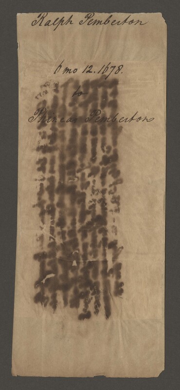 - Letter dated August 22, 1678 (August 12, 1678 Old Style) from Ralph Pemberton to Phineas Pemberton.