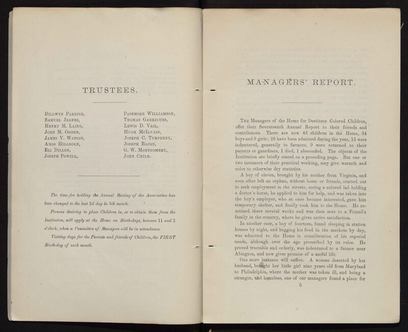 - Philadelphia Home for Destitute Colored Children | Annual reports | Charities--Pennsylvania--Philadelphia | African Americans--Housing | African Americans--Charities | Child welfare--Pennsylvania | African American children--Care | Social work with African American children