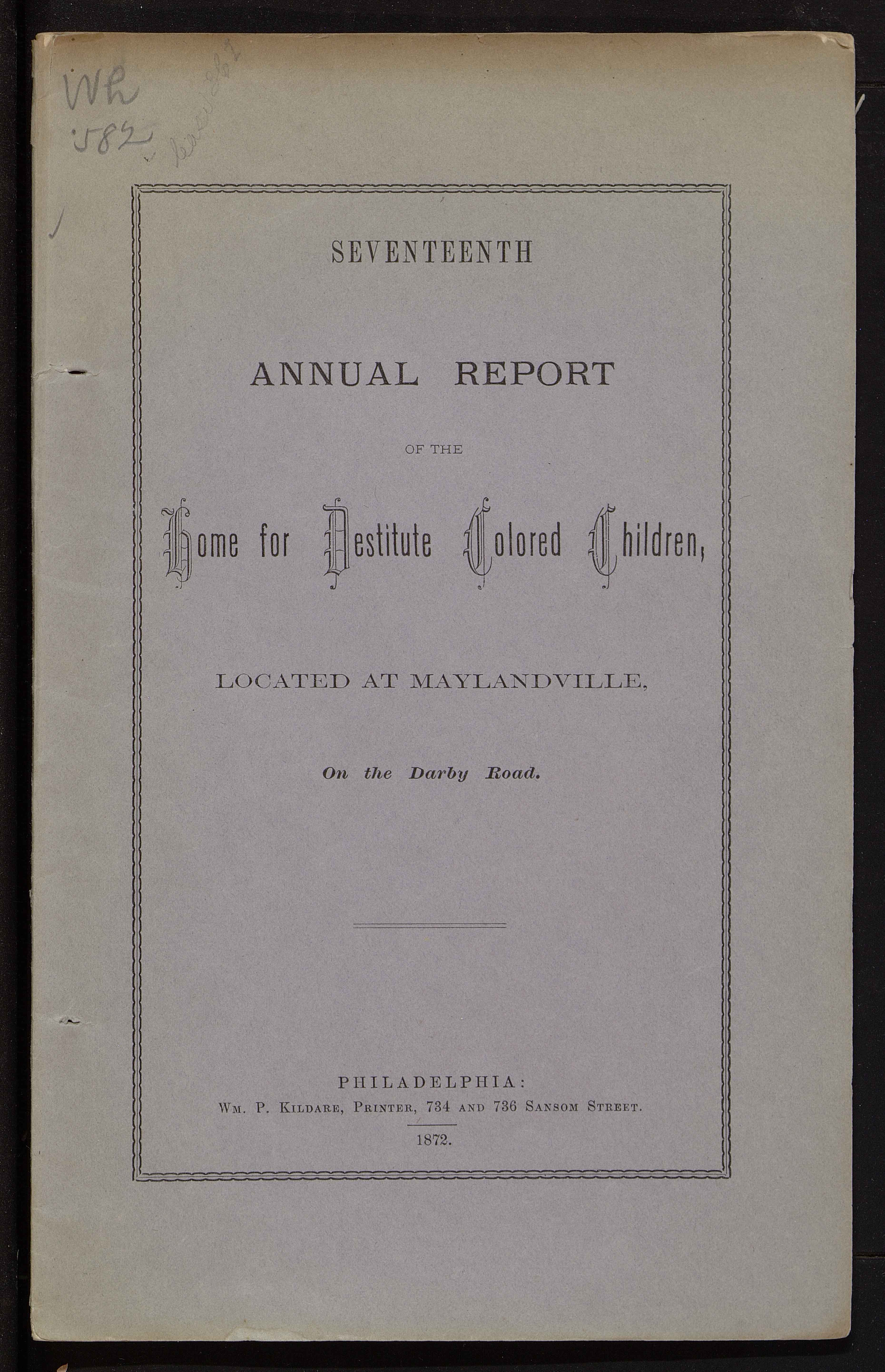 - Seventeenth annual report of the Home for Destitute Colored Children, 1872