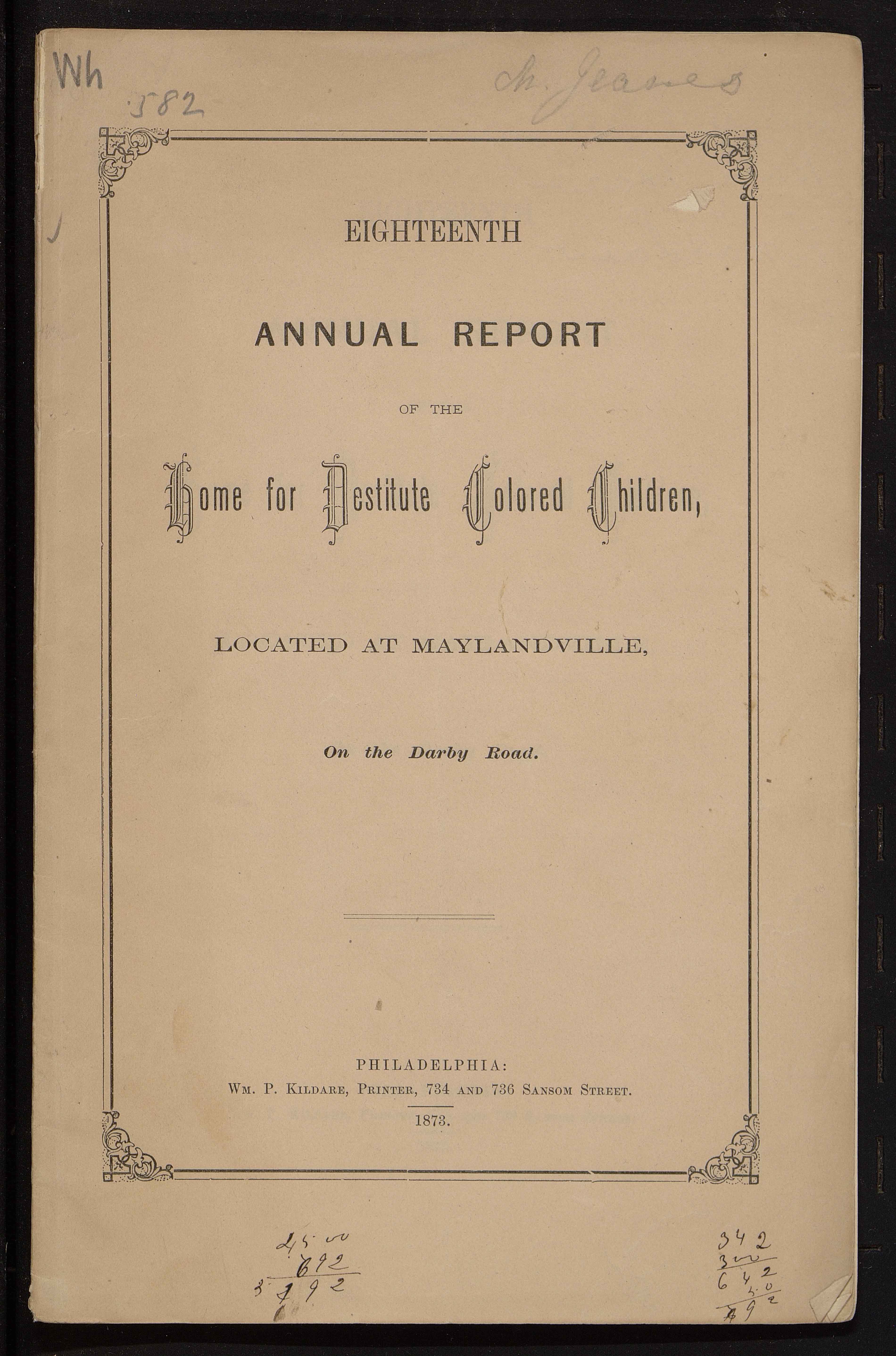 - Eighteenth annual report of the Home for Destitute Colored Children, 1873