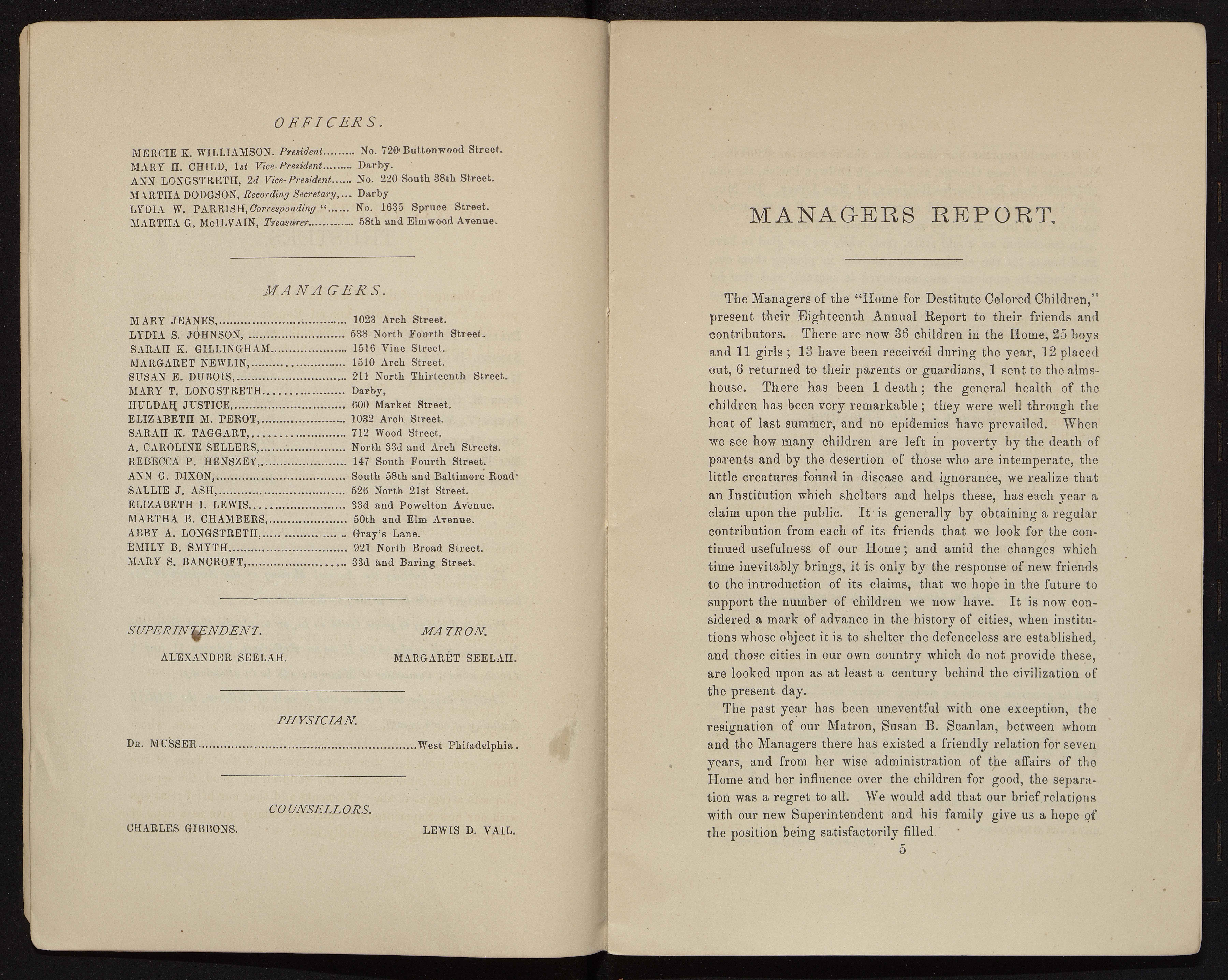 - Philadelphia Home for Destitute Colored Children | Annual reports | Charities--Pennsylvania--Philadelphia | African Americans--Housing | African Americans--Charities | Child welfare--Pennsylvania | African American children--Care | Social work with African American children
