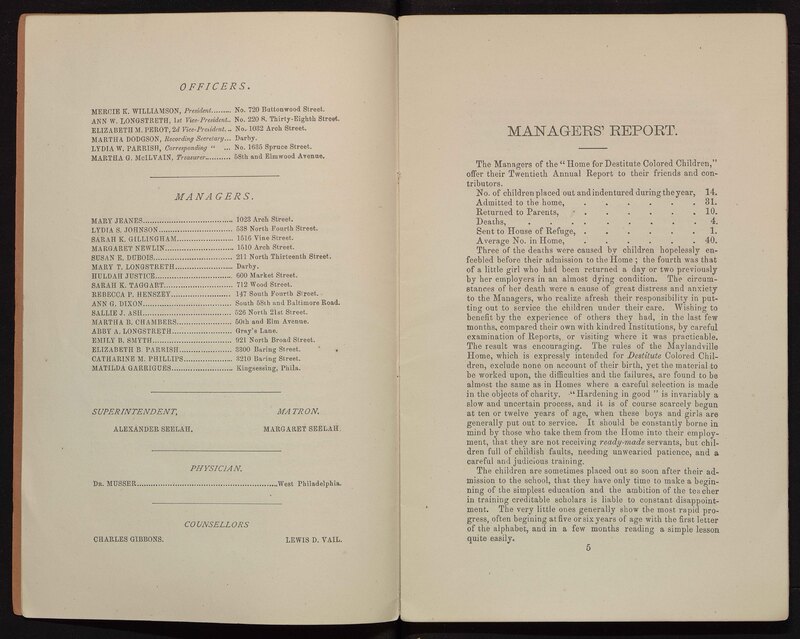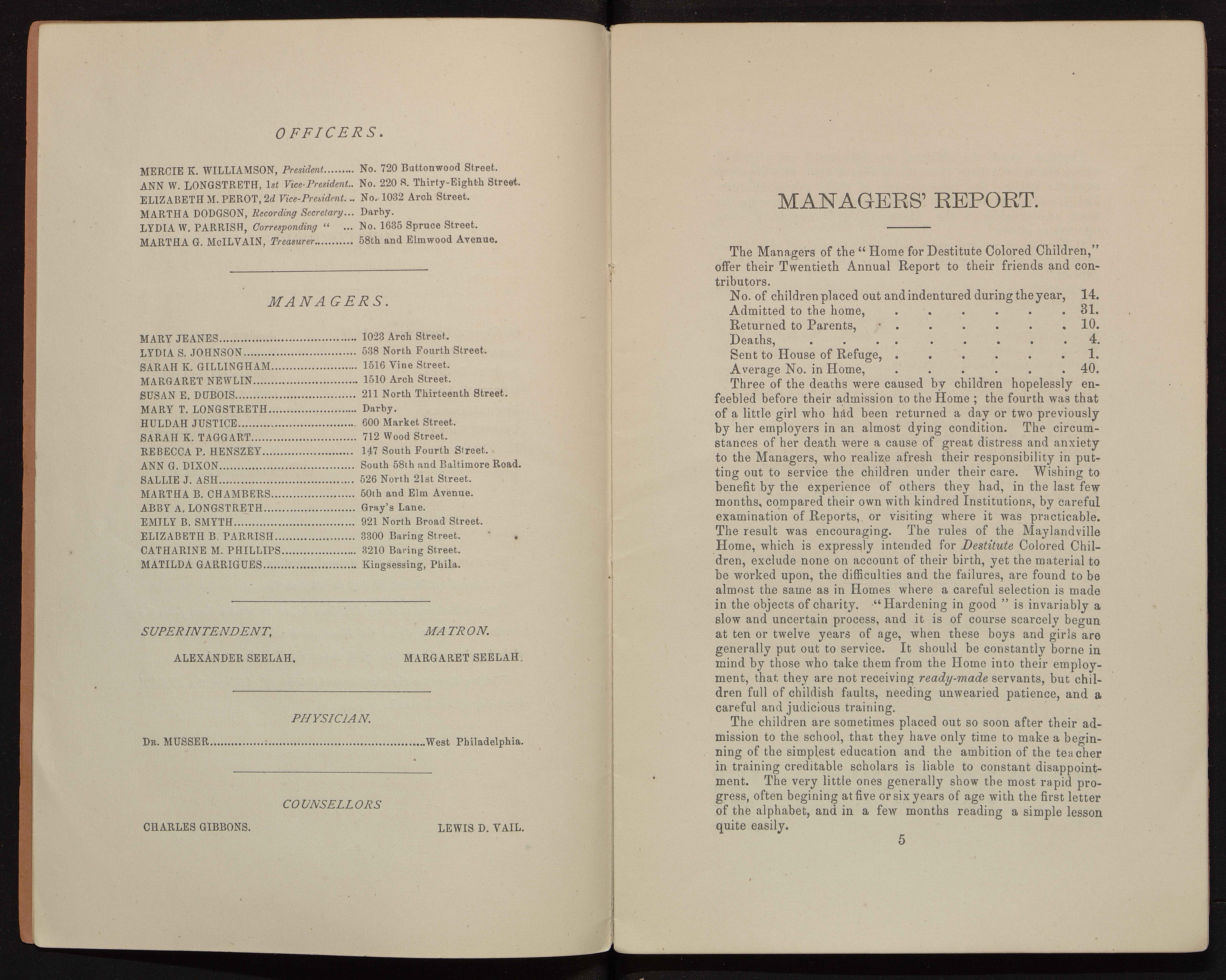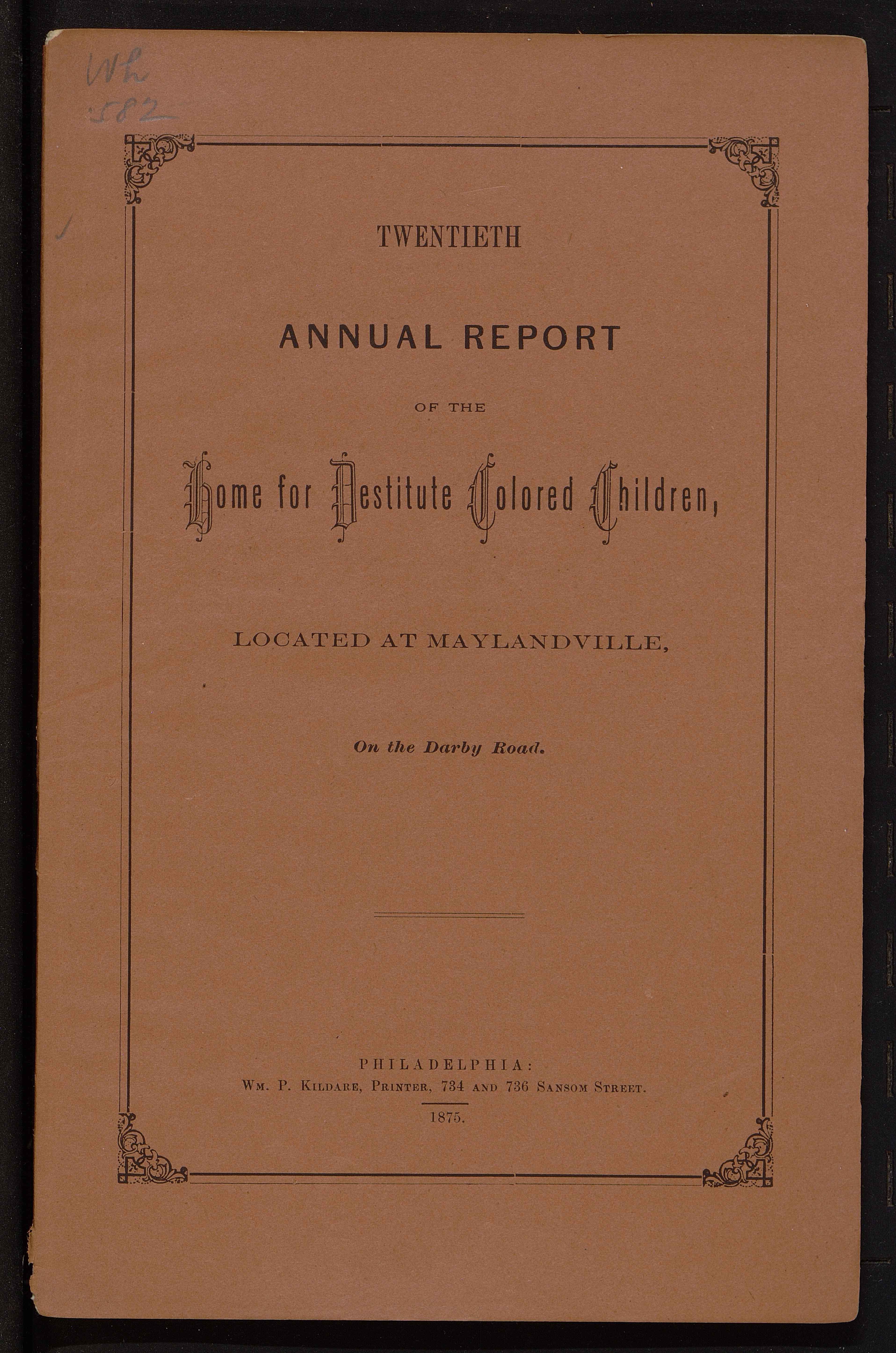 - Philadelphia Home for Destitute Colored Children | Annual reports | Charities--Pennsylvania--Philadelphia | African Americans--Housing | African Americans--Charities | Child welfare--Pennsylvania | African American children--Care | Social work with African American children