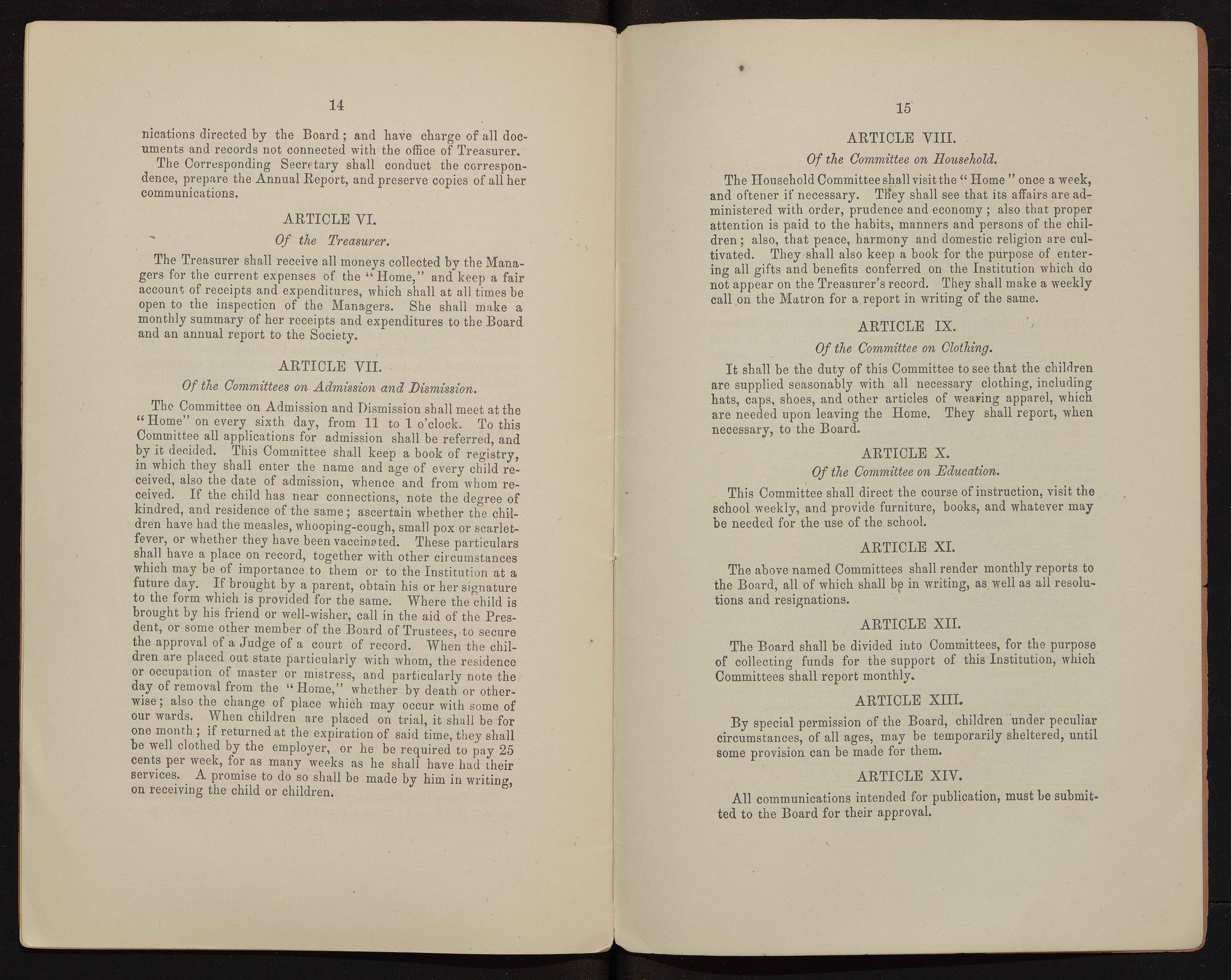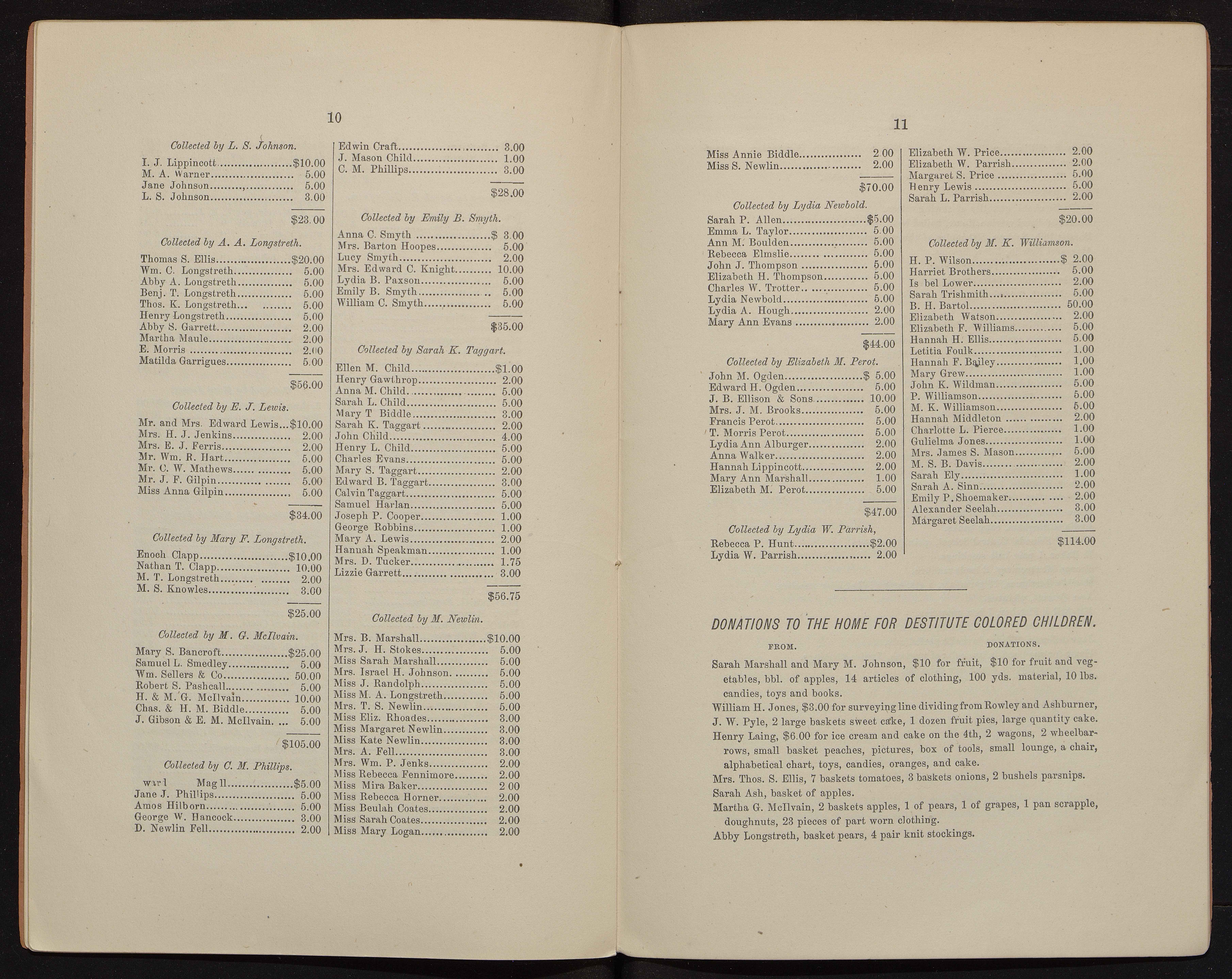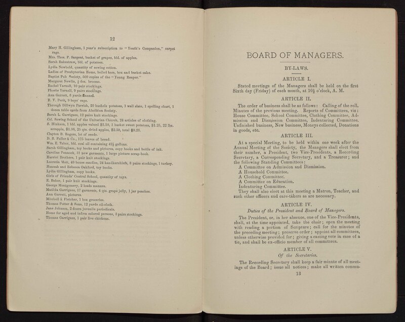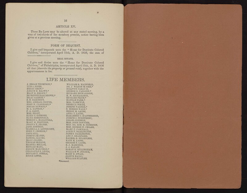 - The Philadelphia Home for Destitute Colored Children, a Quaker charity, was founded in 1856. Its stated goals were to provide a home, food, clothing, and an education for black children in Philadelphia. The minutes of the Home provide a record of its activities, bylaws, finances, donations, and membership subscriptions.