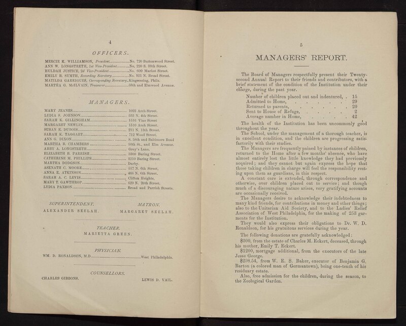 - Philadelphia Home for Destitute Colored Children | Annual reports | Charities--Pennsylvania--Philadelphia | African Americans--Housing | African Americans--Charities | Child welfare--Pennsylvania | African American children--Care | Social work with African American children
