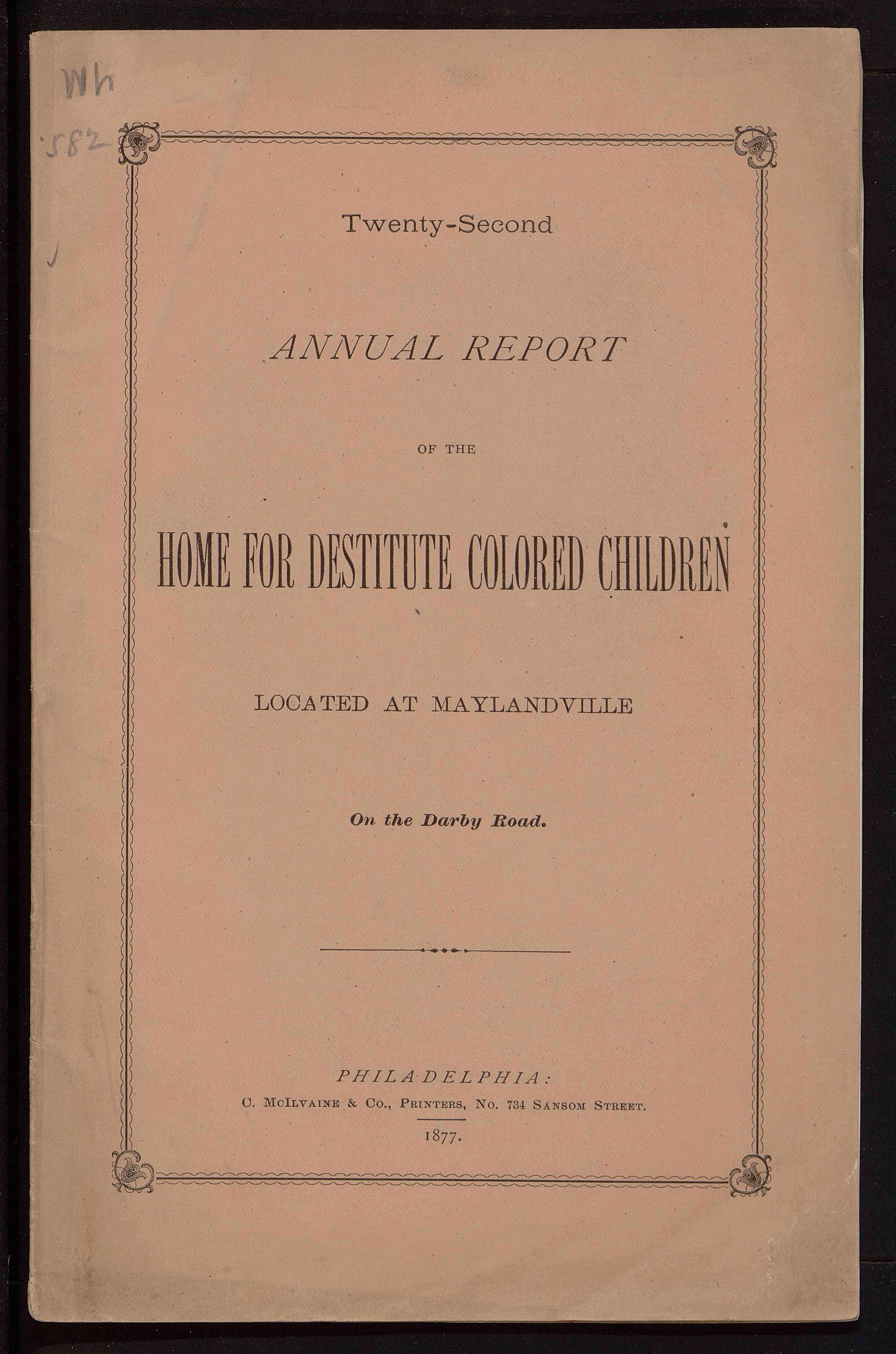 - Philadelphia Home for Destitute Colored Children Annual Reports (Wh.*582)