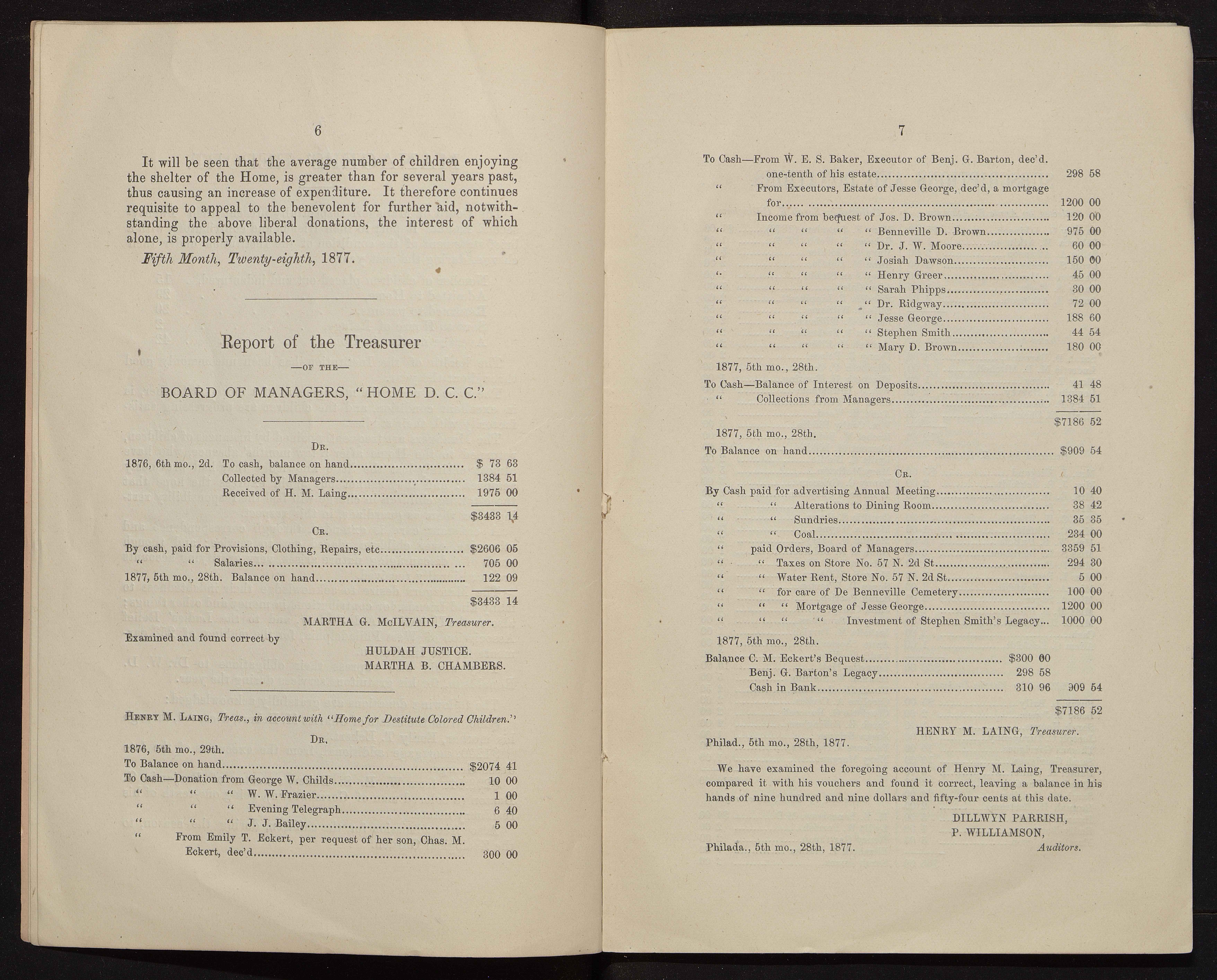 Twenty-second annual report of the Home for Destitute Colored Children, 1877