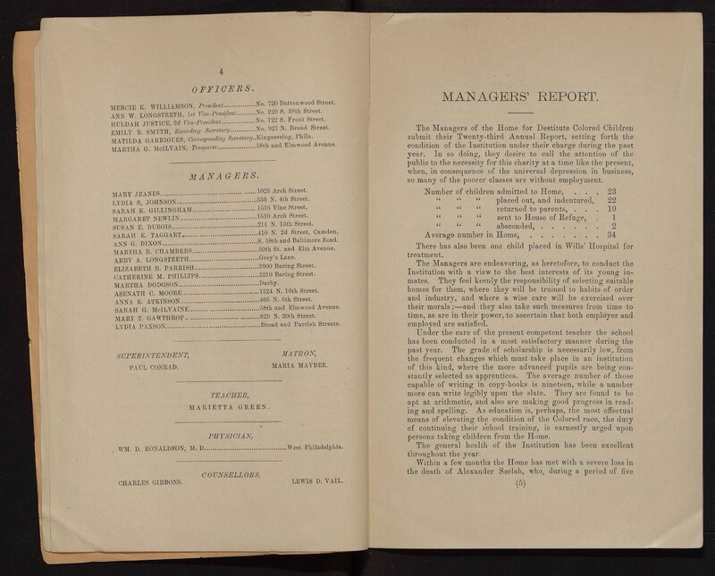 - Philadelphia Home for Destitute Colored Children | Annual reports | Charities--Pennsylvania--Philadelphia | African Americans--Housing | African Americans--Charities | Child welfare--Pennsylvania | African American children--Care | Social work with African American children