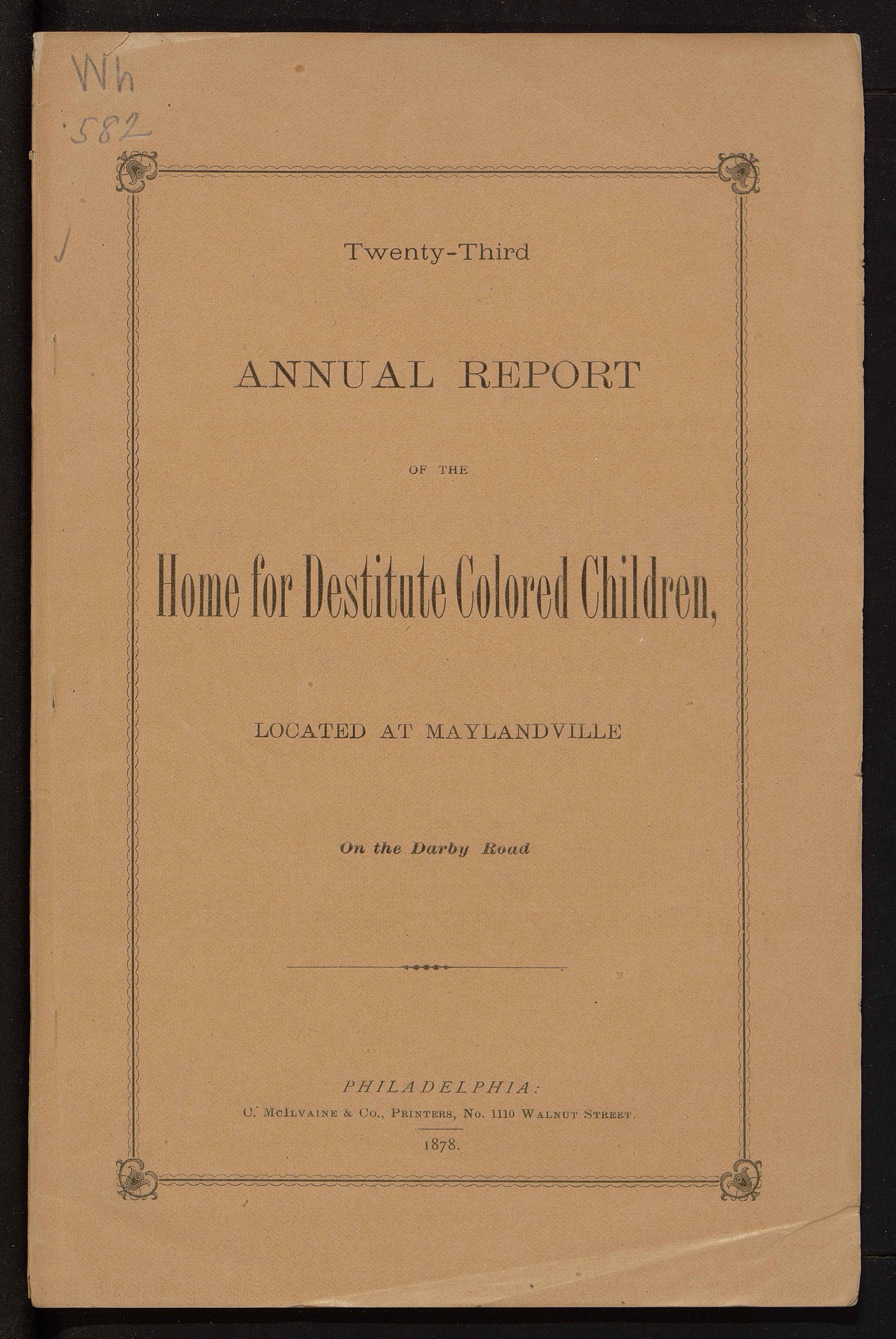 - Philadelphia Home for Destitute Colored Children Annual Reports (Wh.*582)