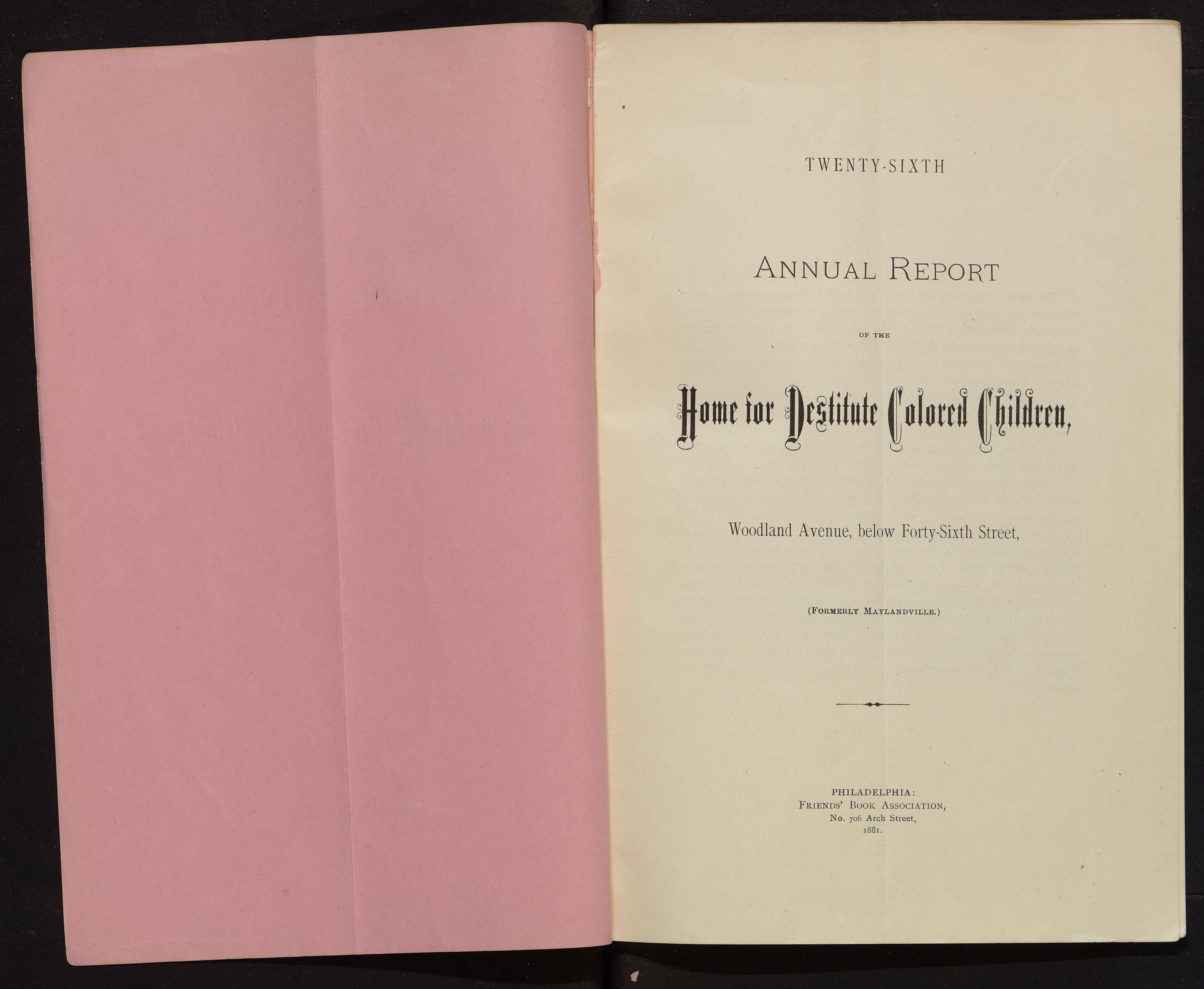 - Twenty-sixth annual report of the Home for Destitute Colored Children, 1881