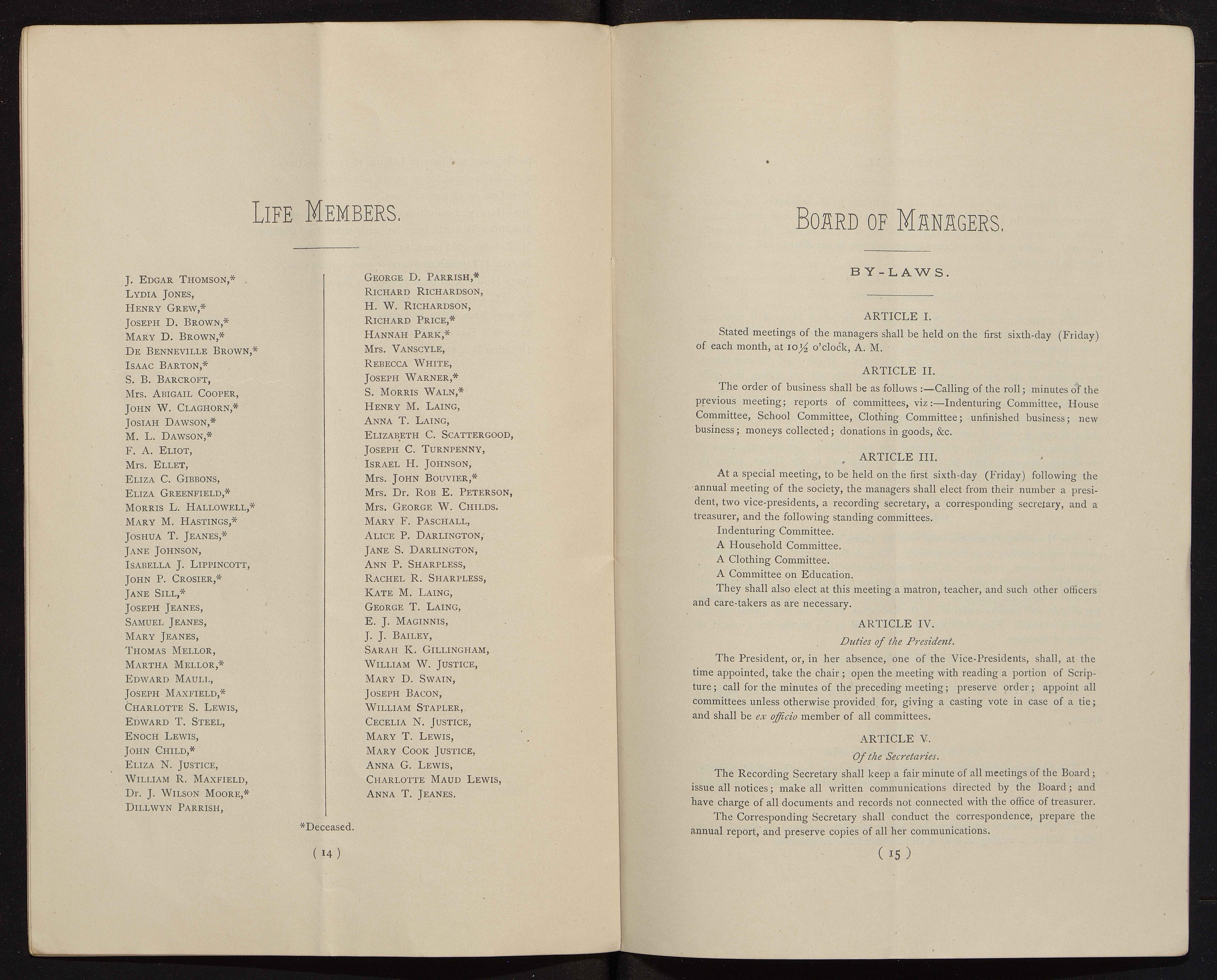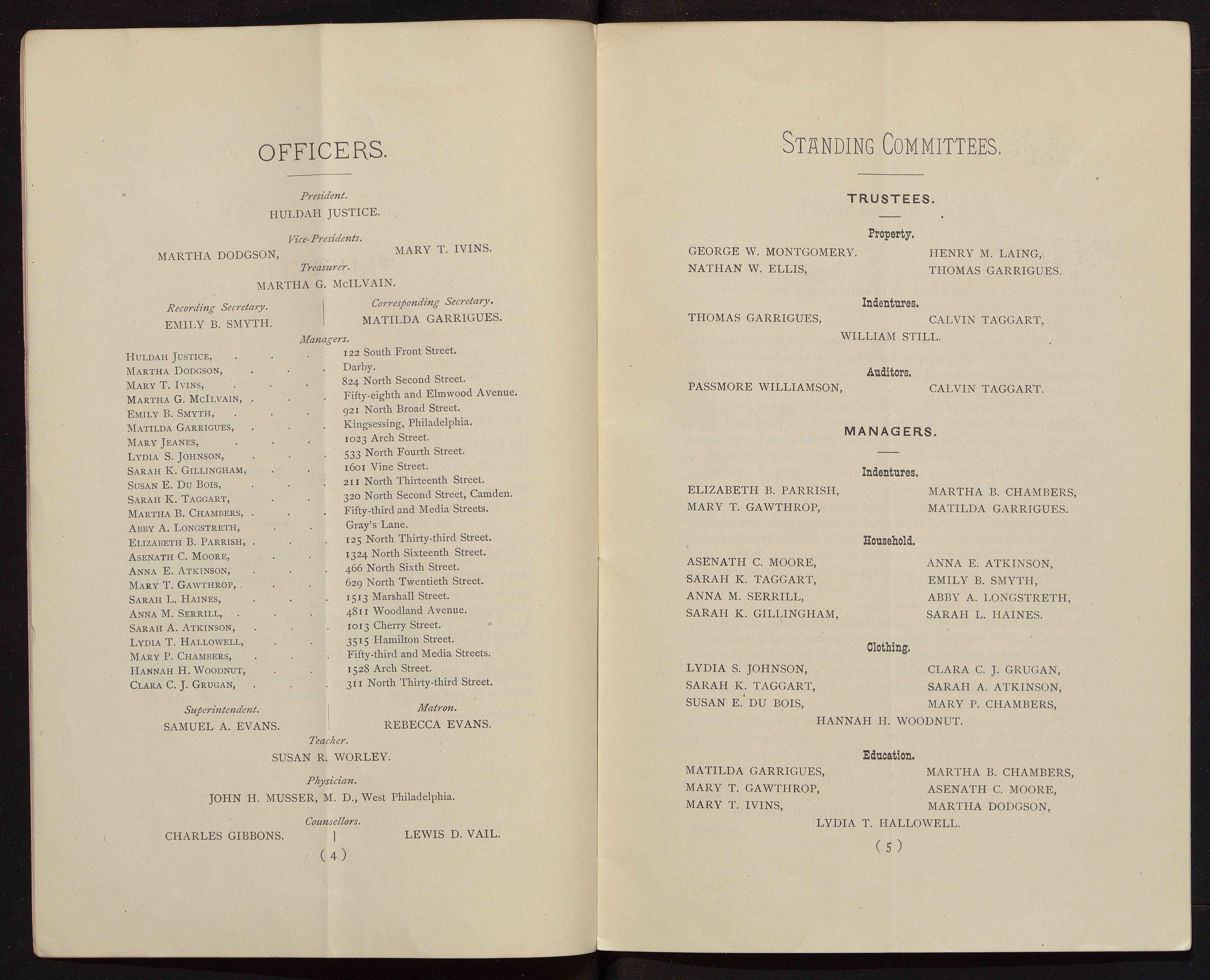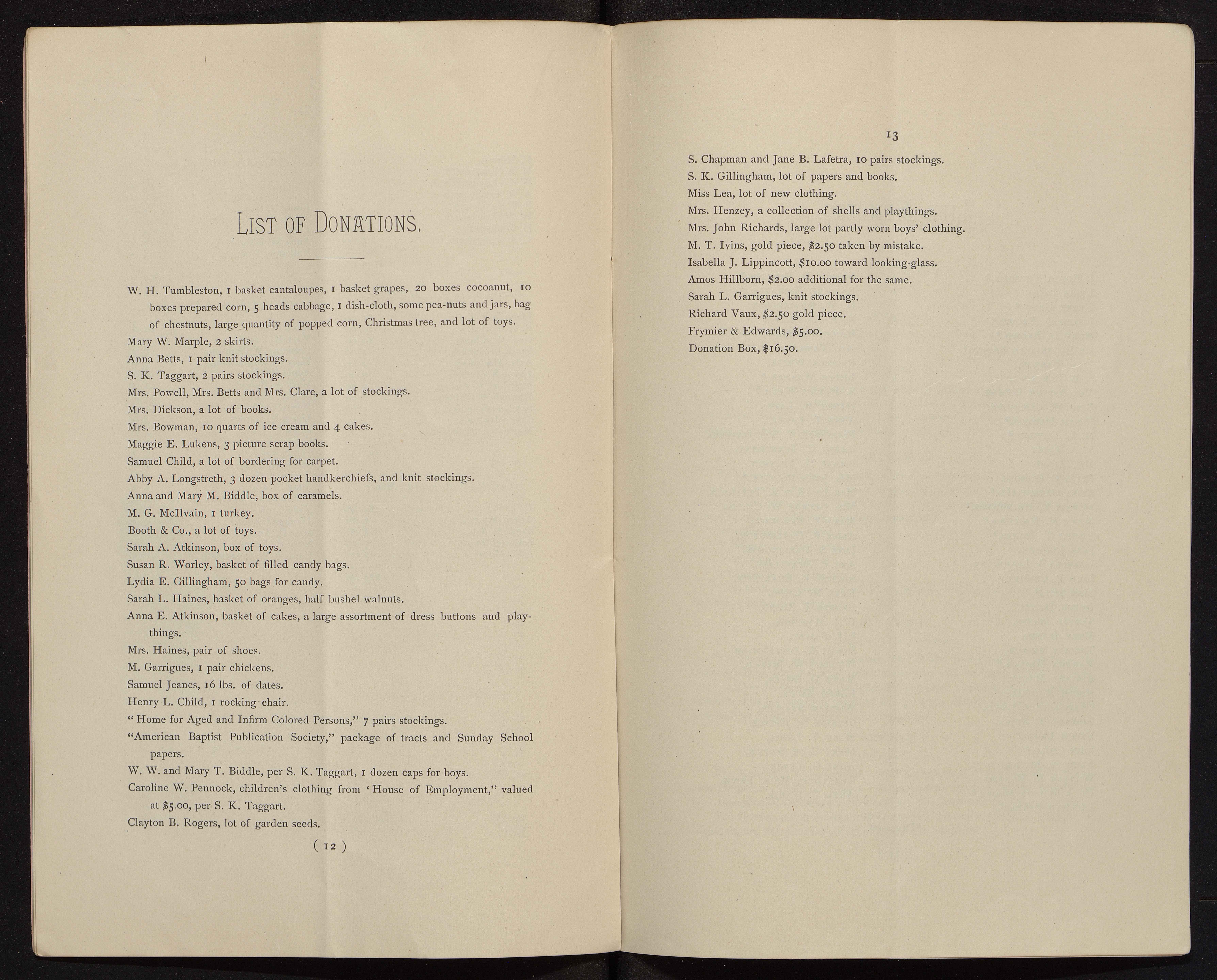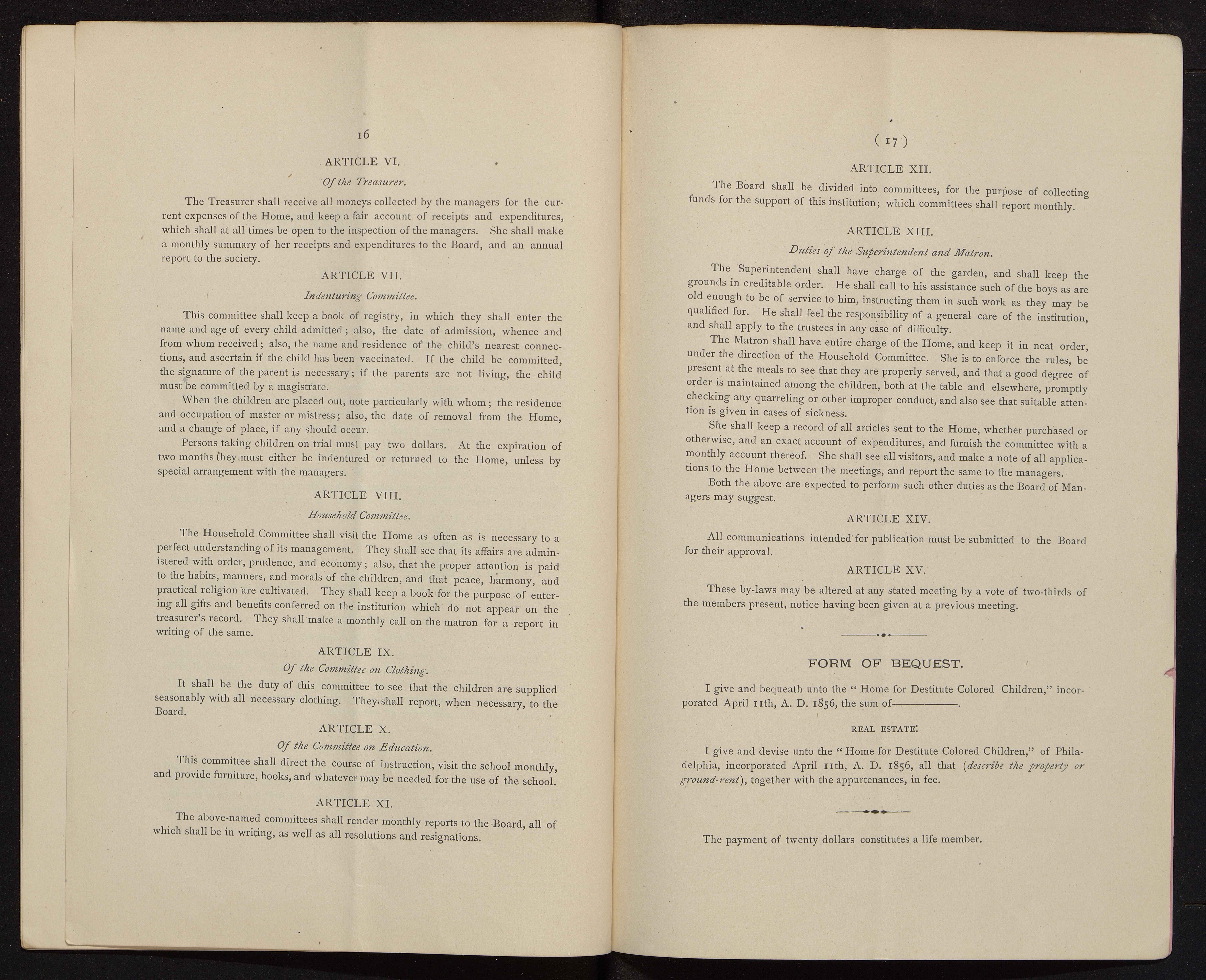 - The Philadelphia Home for Destitute Colored Children, a Quaker charity, was founded in 1856. Its stated goals were to provide a home, food, clothing, and an education for black children in Philadelphia. The minutes of the Home provide a record of its activities, bylaws, finances, donations, and membership subscriptions.