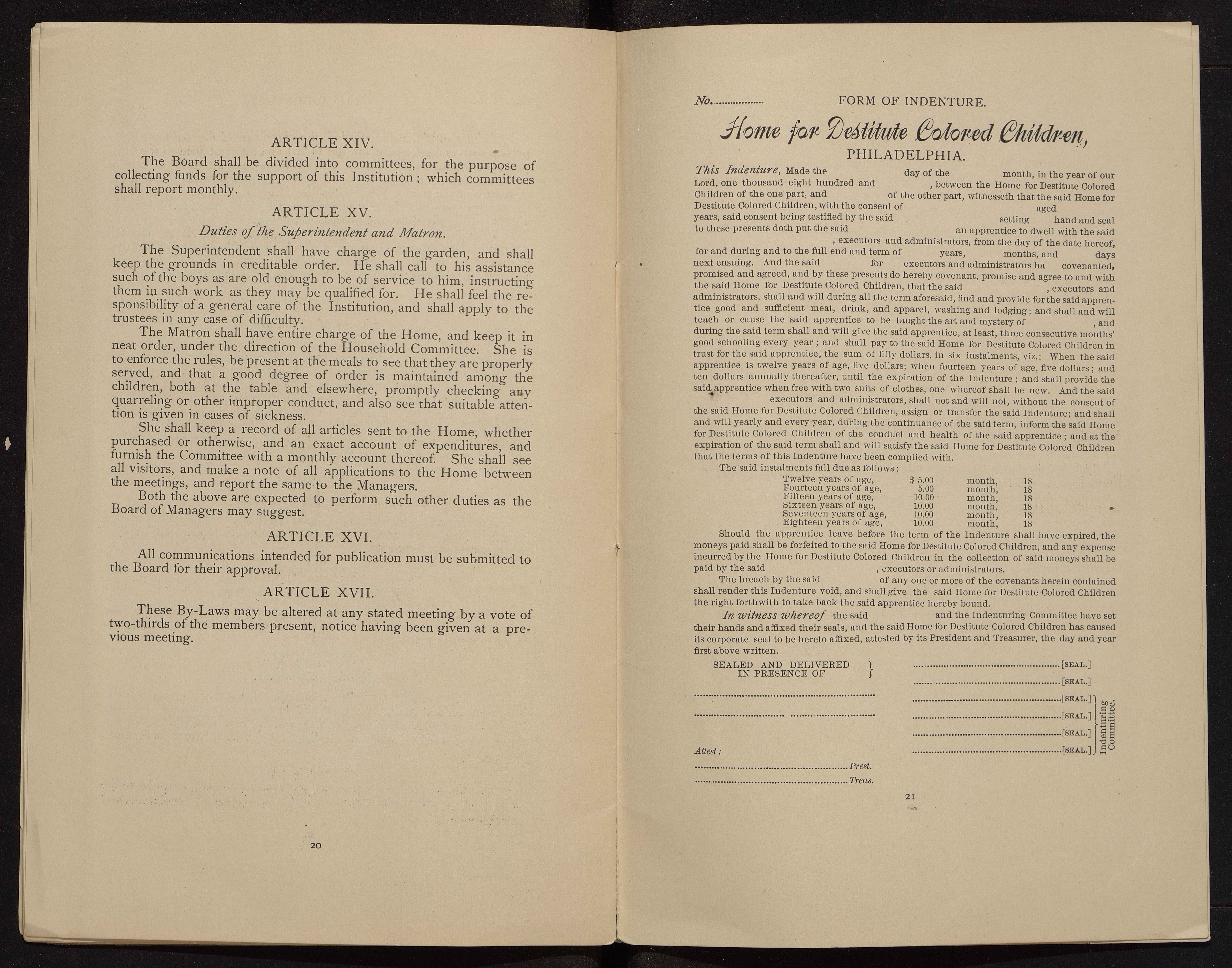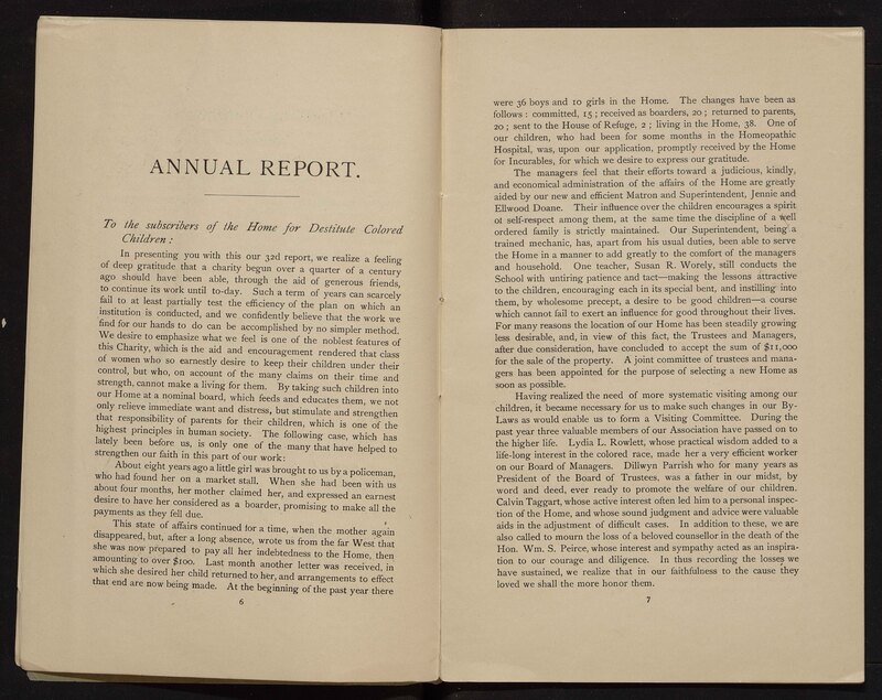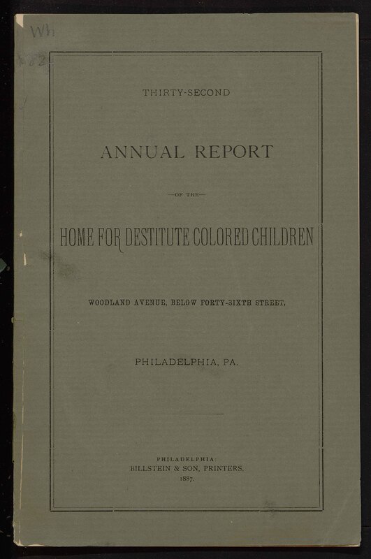 - Philadelphia Home for Destitute Colored Children | Annual reports | Charities--Pennsylvania--Philadelphia | African Americans--Housing | African Americans--Charities | Child welfare--Pennsylvania | African American children--Care | Social work with African American children