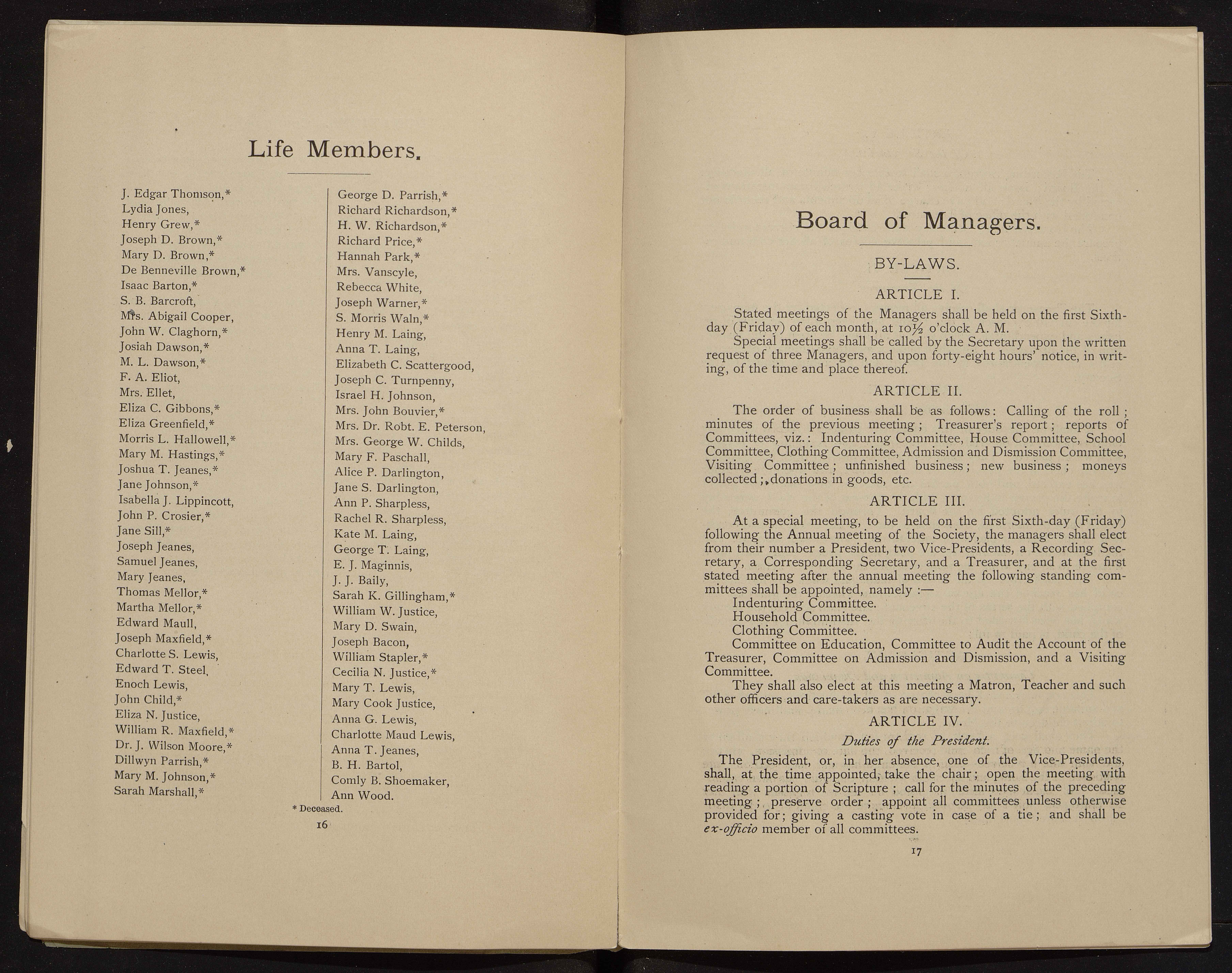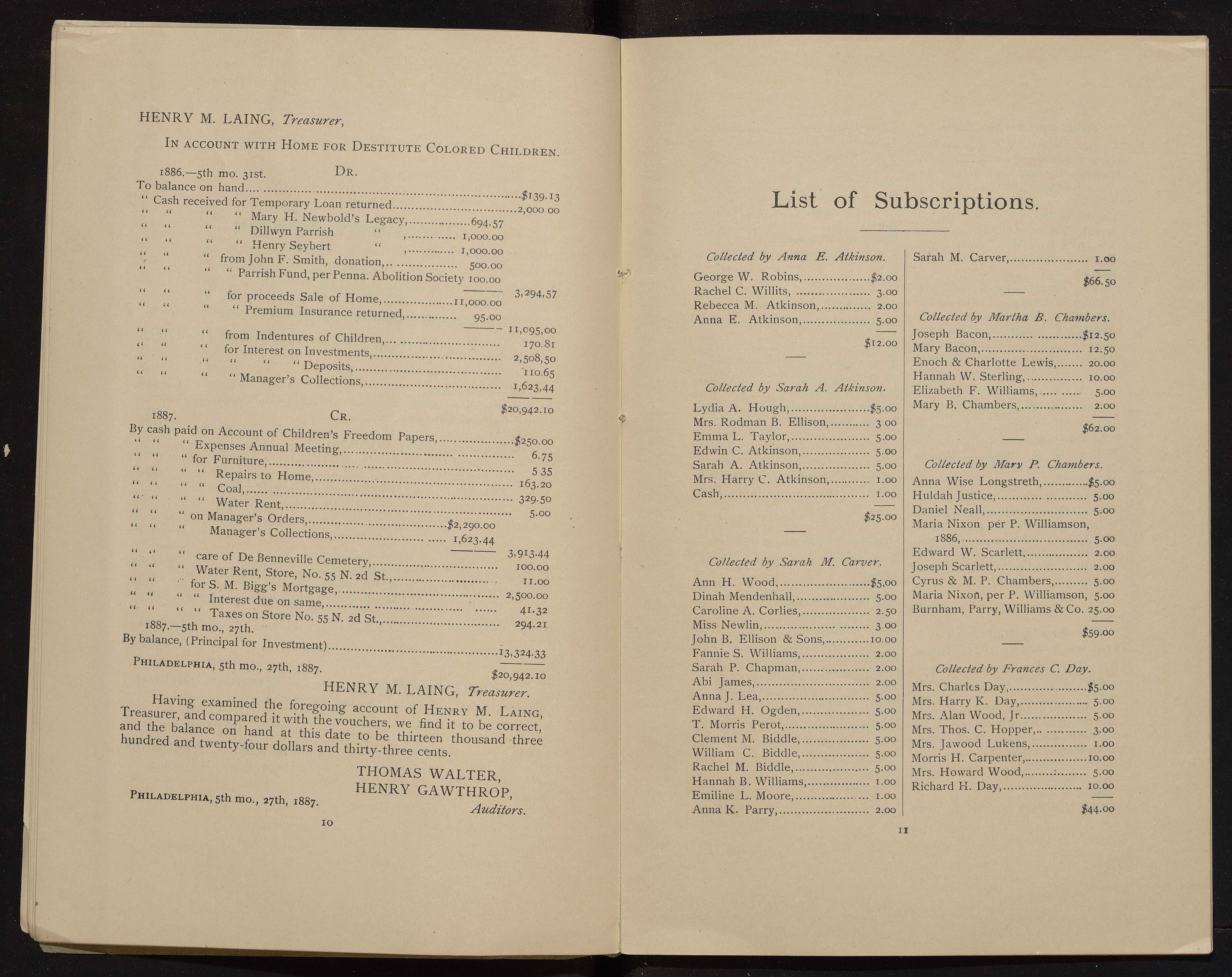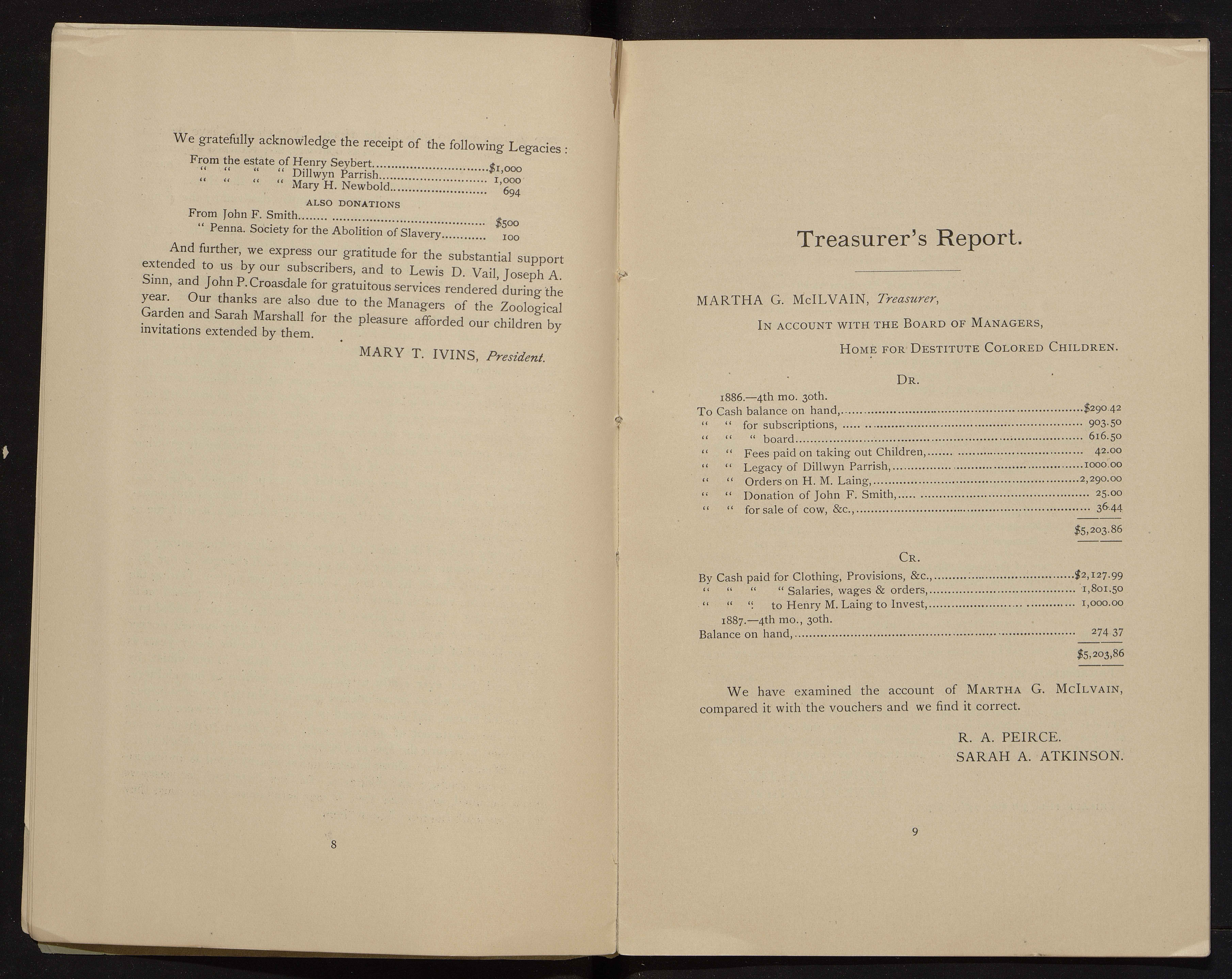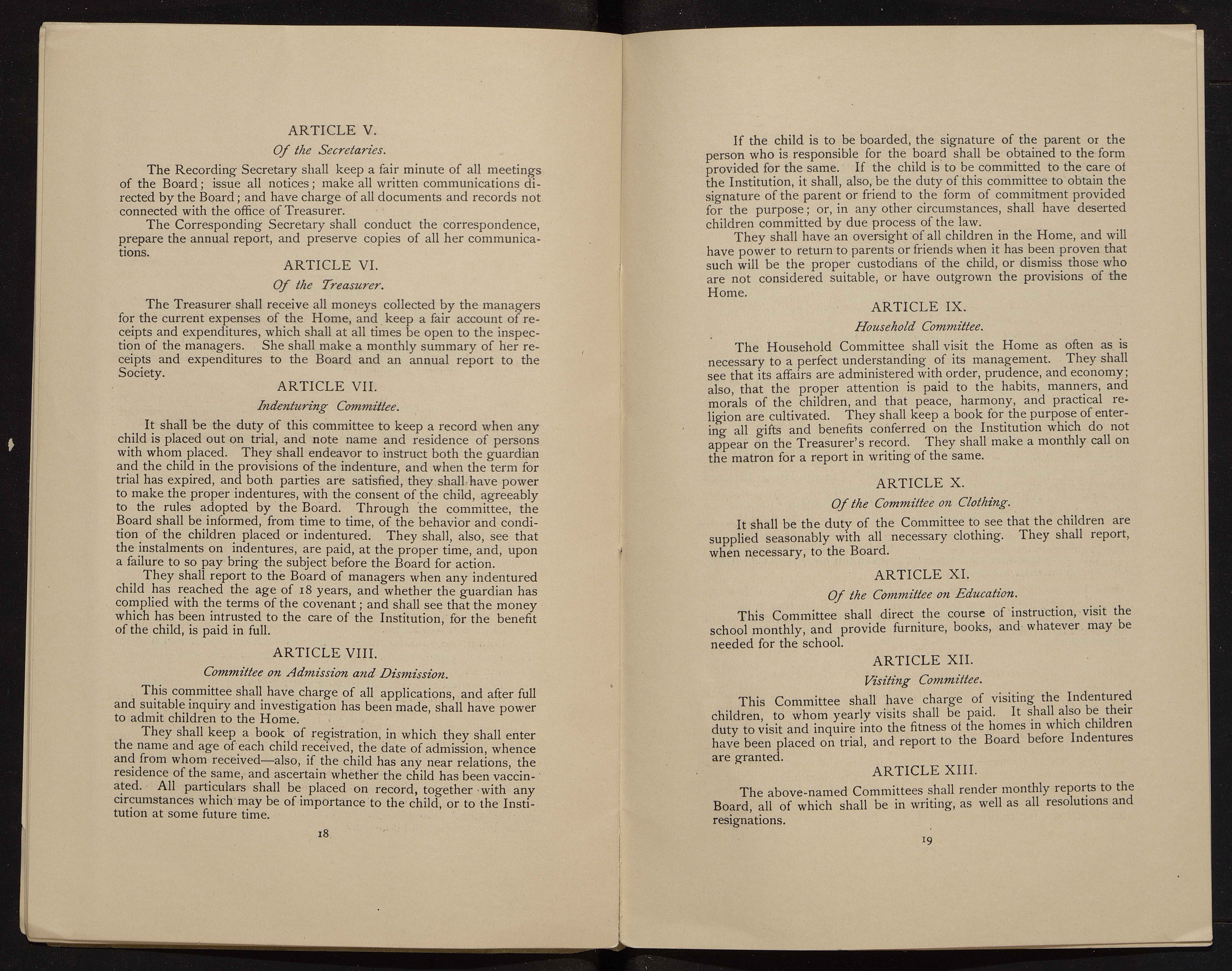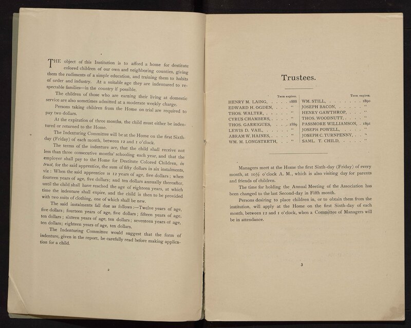 - The Philadelphia Home for Destitute Colored Children, a Quaker charity, was founded in 1856. Its stated goals were to provide a home, food, clothing, and an education for black children in Philadelphia. The minutes of the Home provide a record of its activities, bylaws, finances, donations, and membership subscriptions.