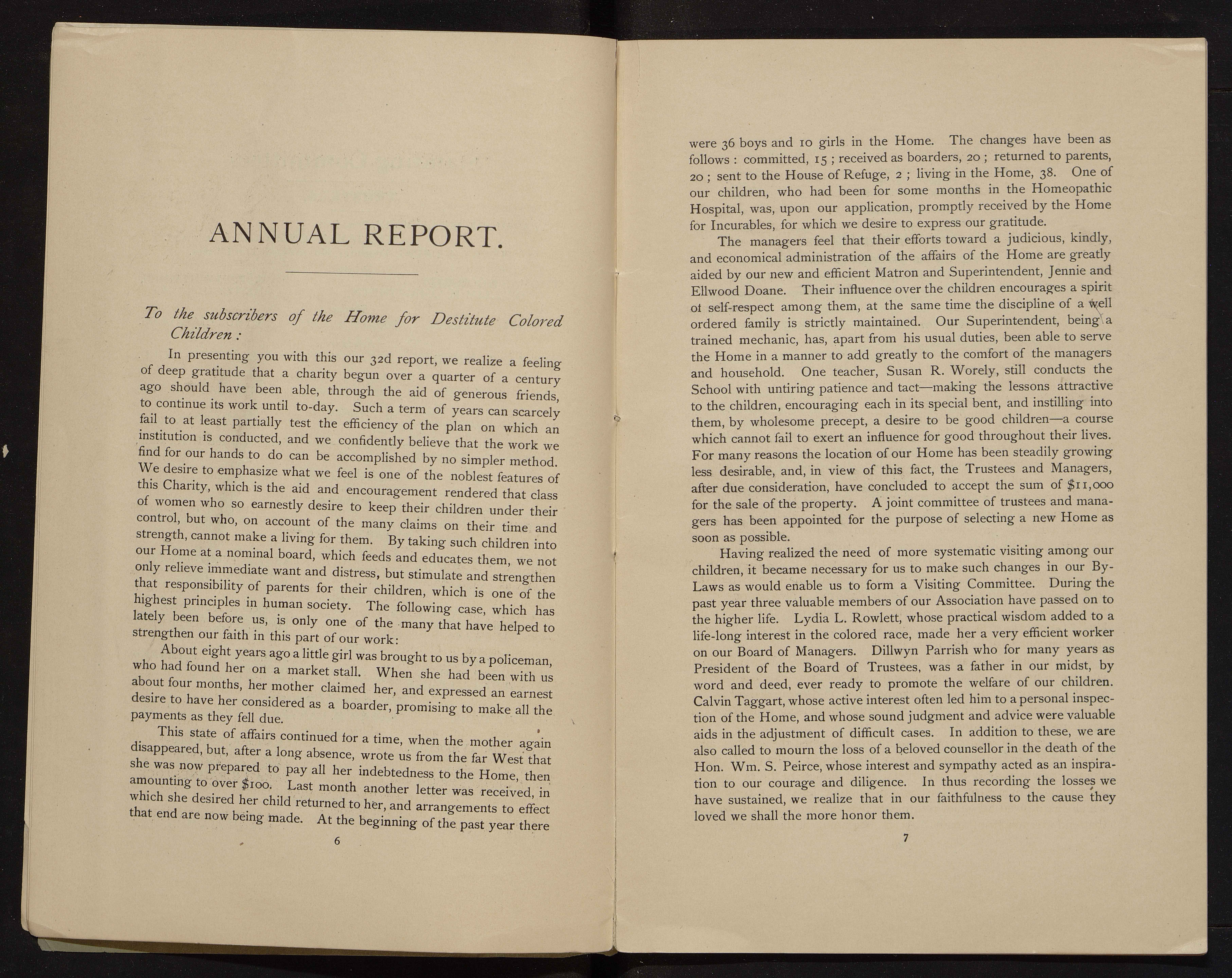 - Thirty-second annual report of the Home for Destitute Colored Children, 1887