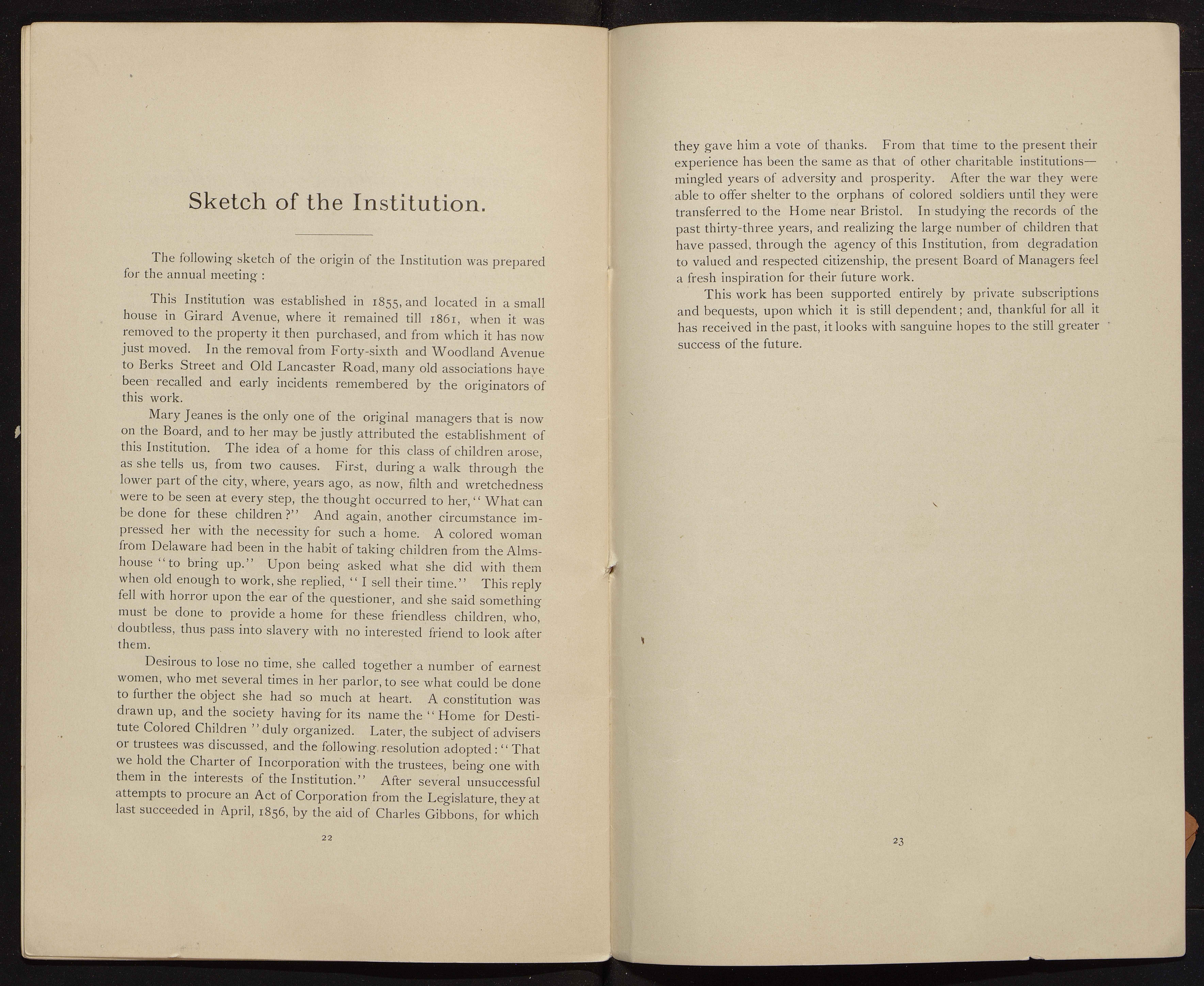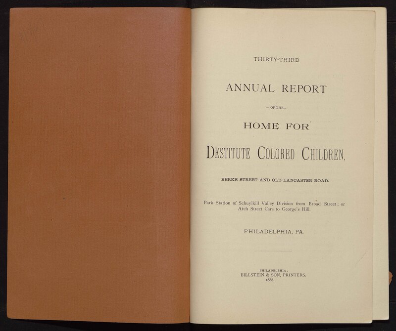 - Philadelphia Home for Destitute Colored Children | Annual reports | Charities--Pennsylvania--Philadelphia | African Americans--Housing | African Americans--Charities | Child welfare--Pennsylvania | African American children--Care | Social work with African American children