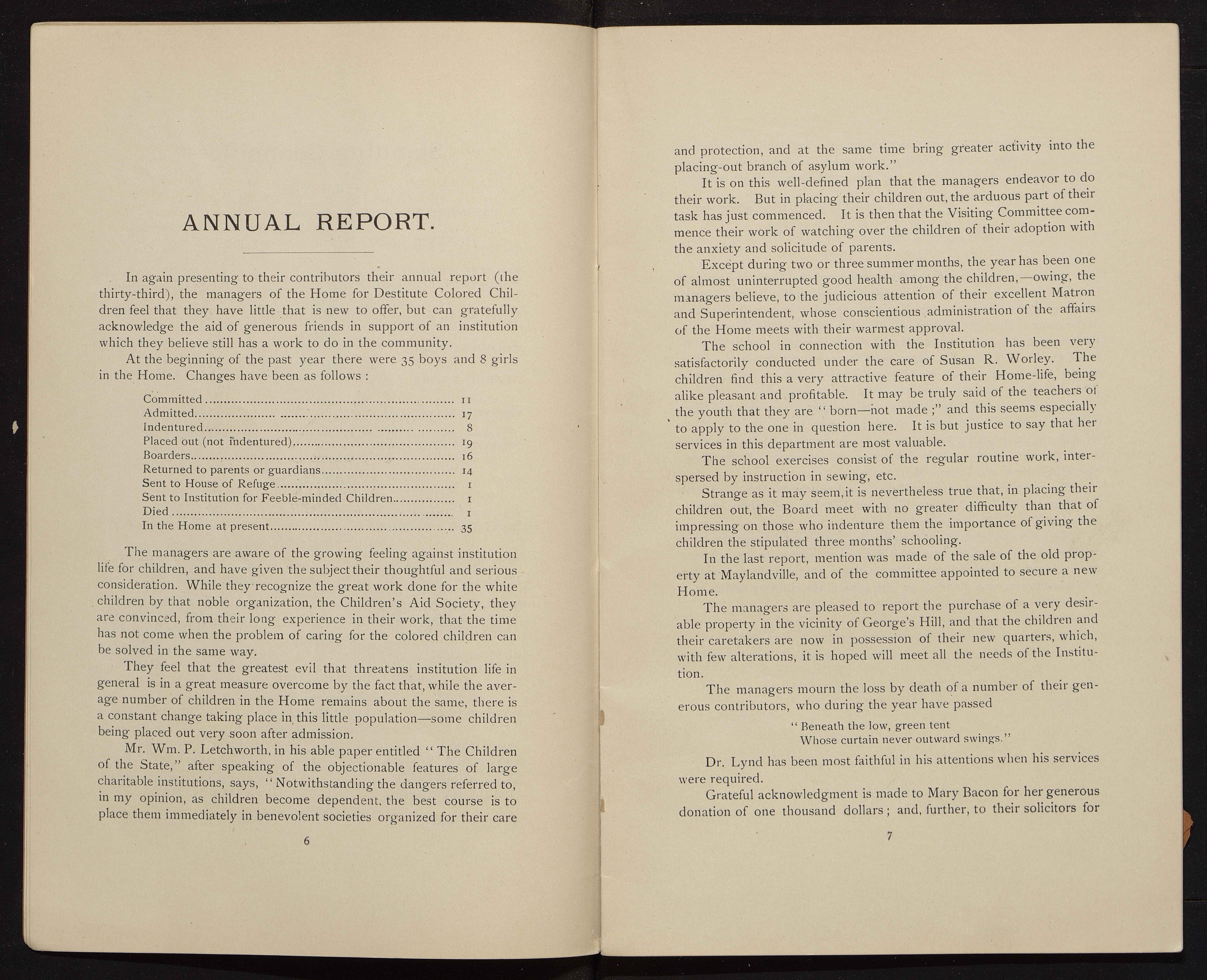 - Thirty-third annual report of the Home for Destitute Colored Children, 1888