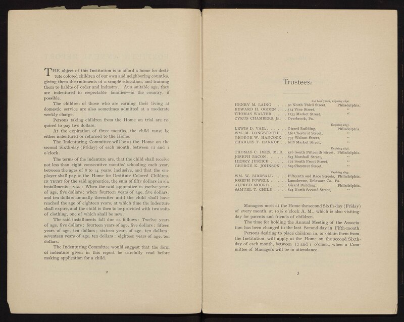 - Philadelphia Home for Destitute Colored Children | Annual reports | Charities--Pennsylvania--Philadelphia | African Americans--Housing | African Americans--Charities | Child welfare--Pennsylvania | African American children--Care | Social work with African American children