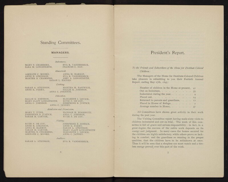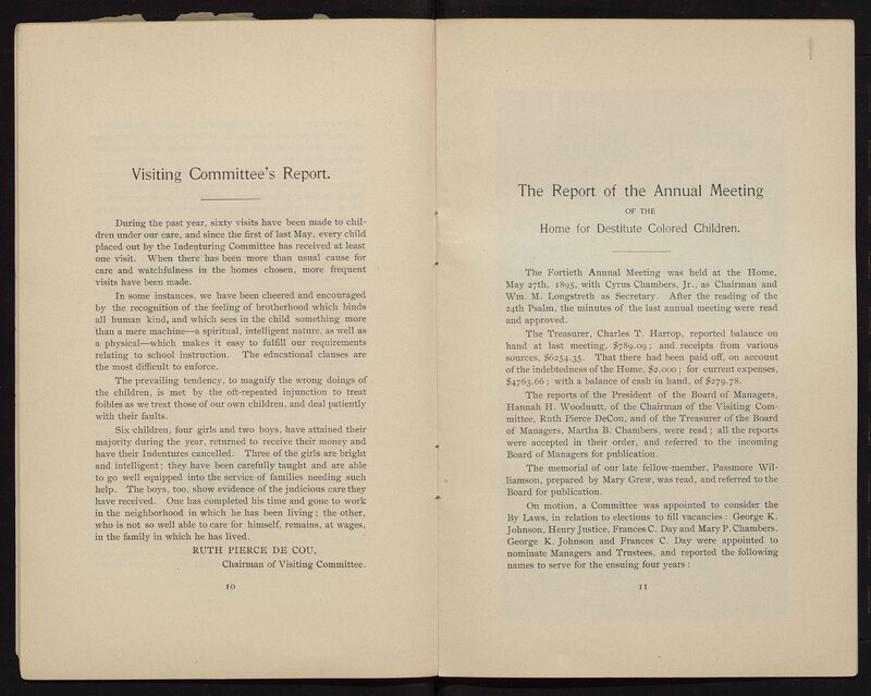 - Fortieth annual report of the Home for Destitute Colored Children, 1895