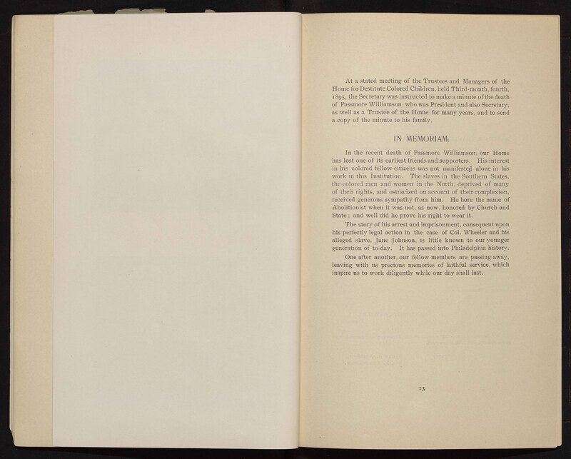 - Philadelphia Home for Destitute Colored Children Annual Reports (Wh.*582)