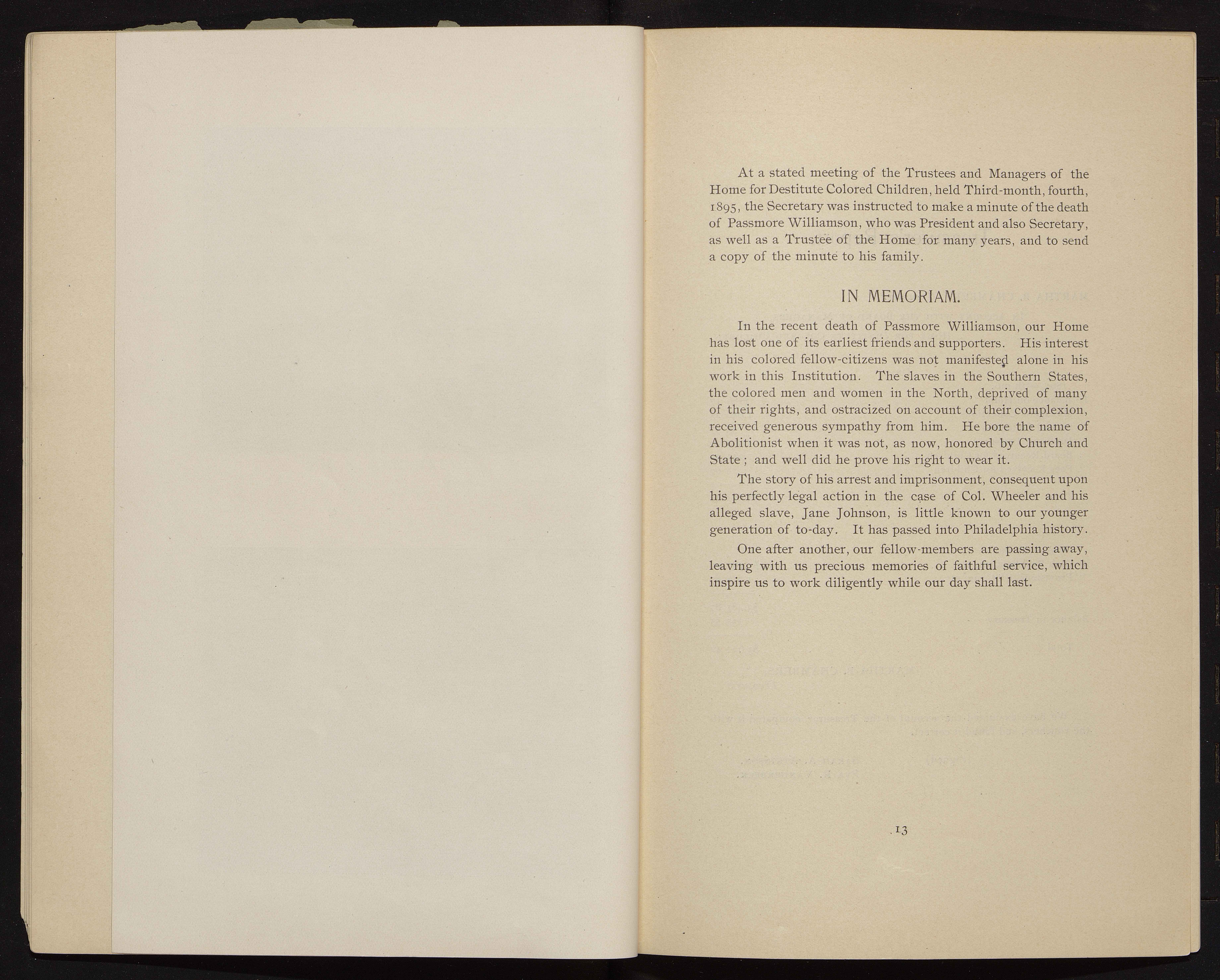 - The Philadelphia Home for Destitute Colored Children, a Quaker charity, was founded in 1856. Its stated goals were to provide a home, food, clothing, and an education for black children in Philadelphia. The minutes of the Home provide a record of its activities, bylaws, finances, donations, and membership subscriptions.