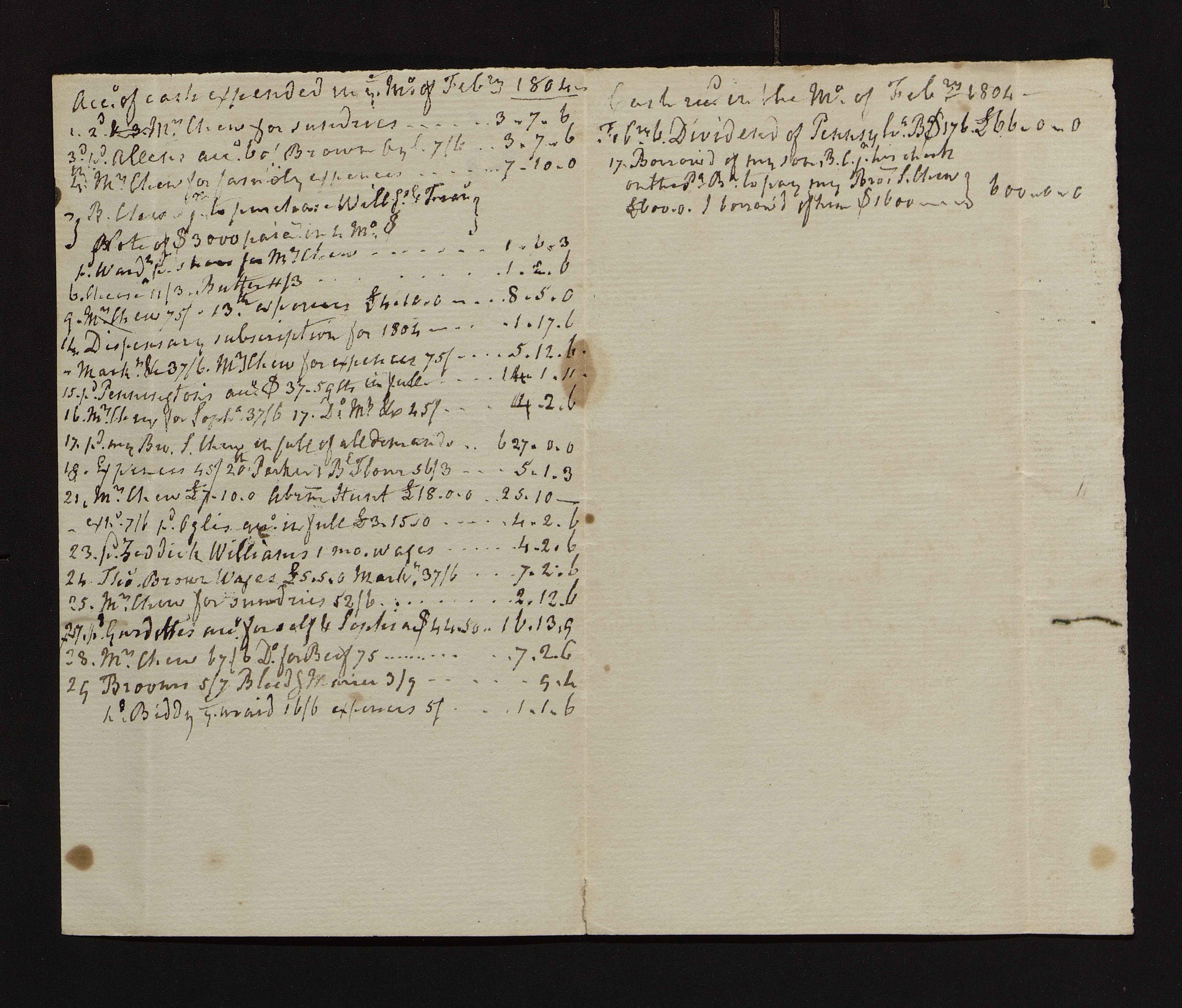 Benjamin Chew (1722-1810) Accounts: Cash expended, 1804