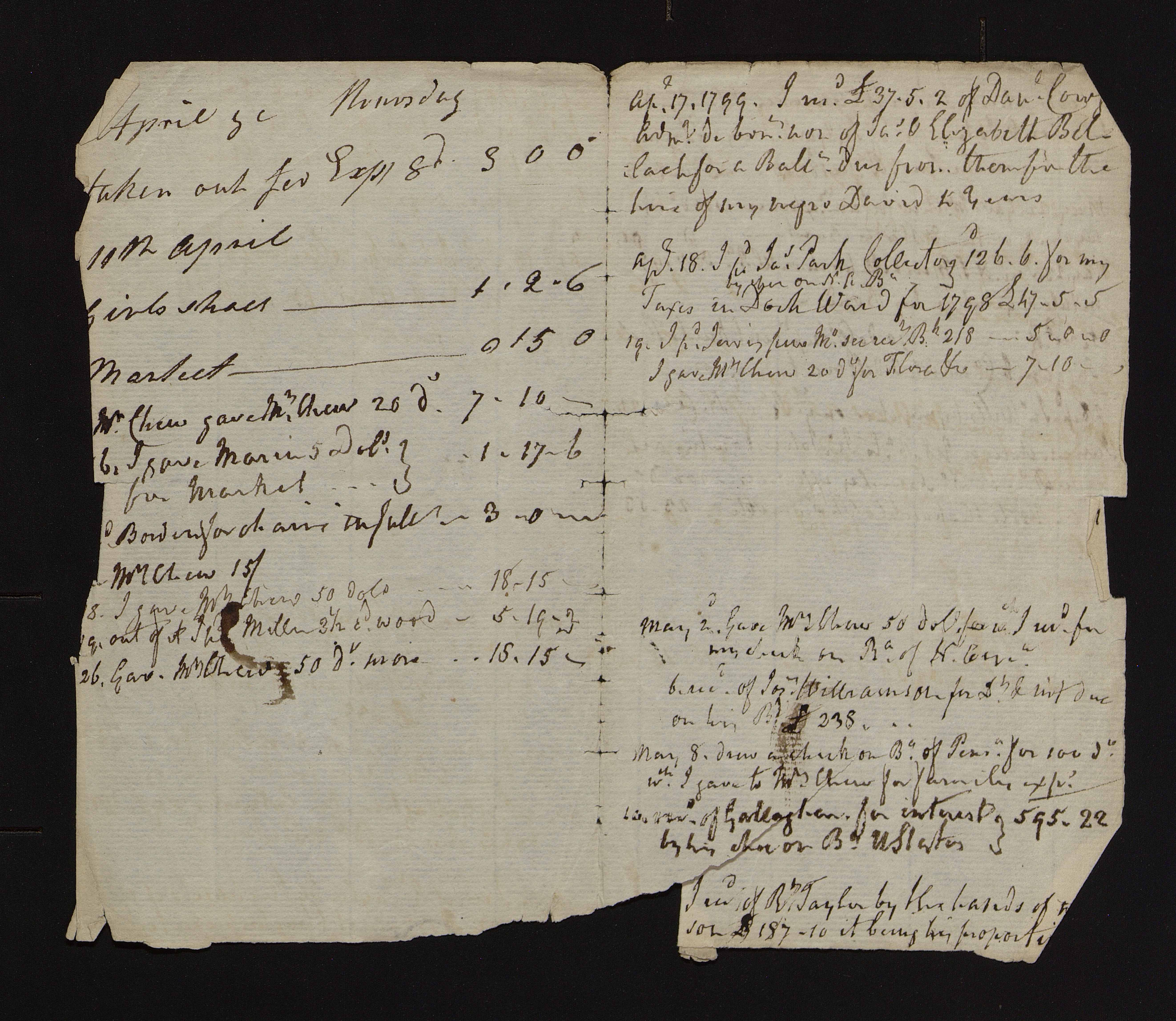 Benjamin Chew (1722-1810) Accounts: Cash expended, 1799