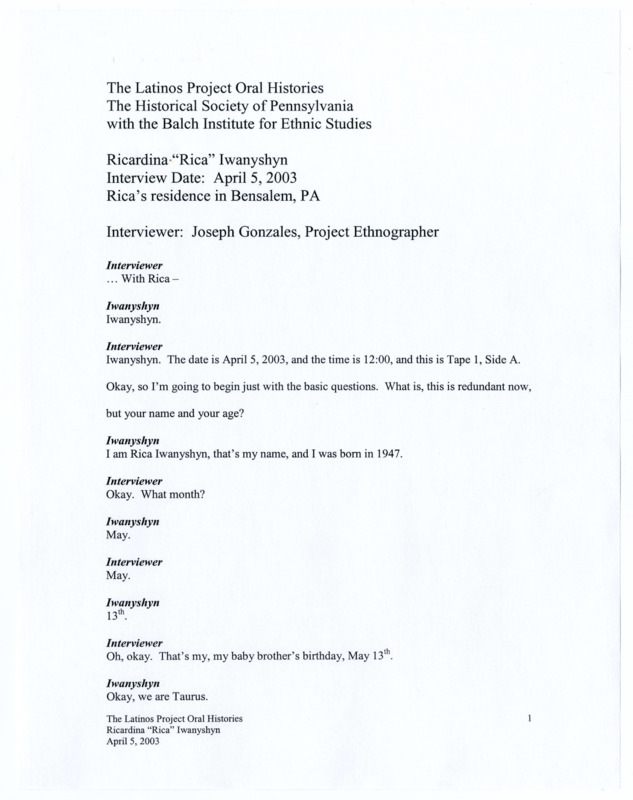 Ricardina Iwanyshyn Transcript Original