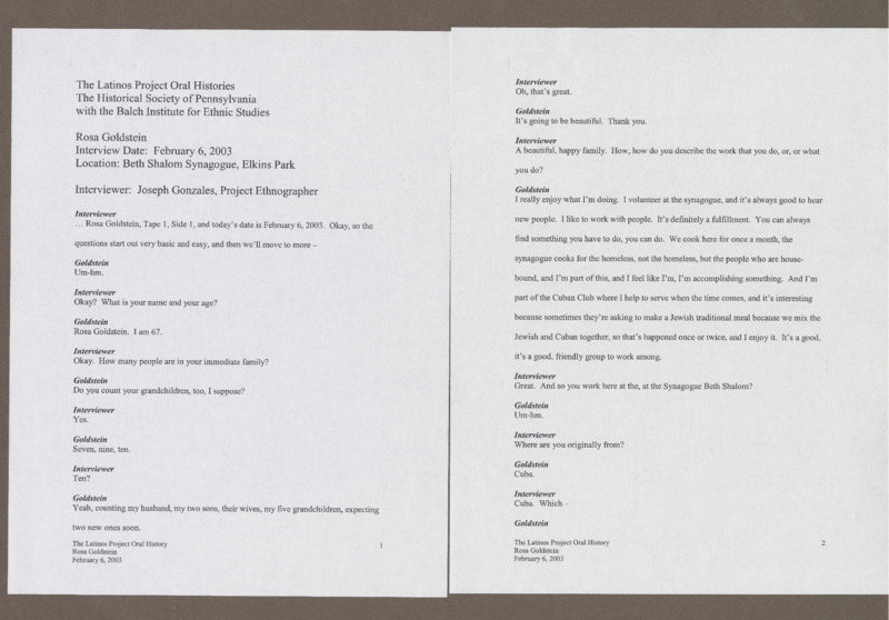 Rosa Goldstein Transcript Original