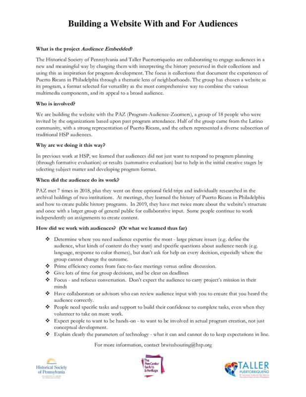 Museums and Web Conference Handout 2019